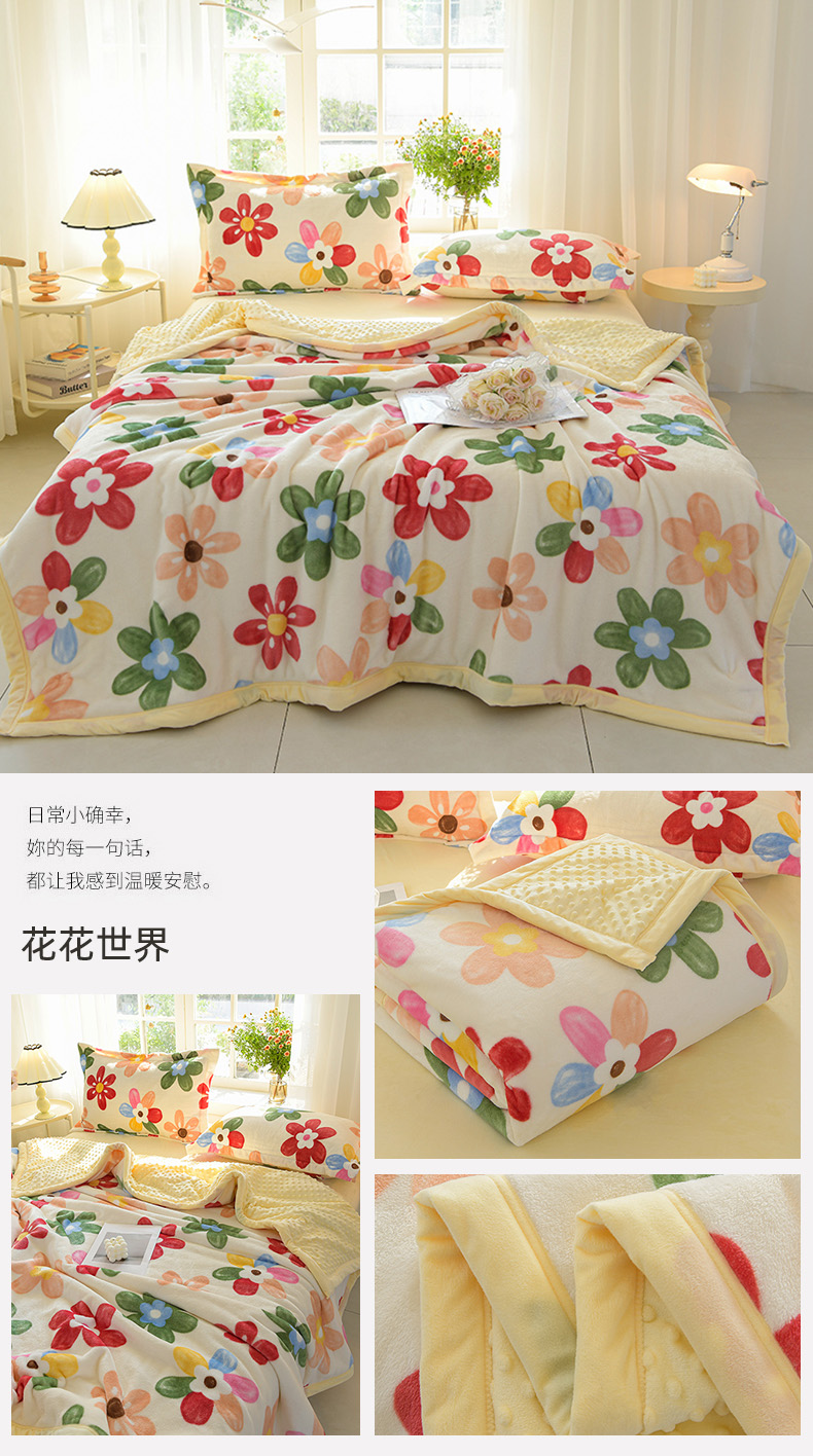 (总)圣楚家纺 2025新款牛奶绒羊羔绒双层毯盖毯毯子,花漾色彩,蓝色天空,迷人花香,邂逅彩虹