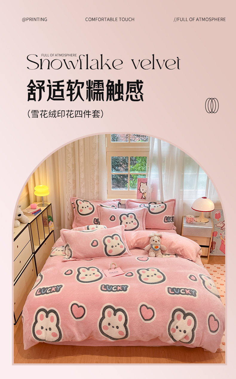 (总)川悦生活 2025新款立体雪花绒印花大床四件套系列一场景一,爱米兔,冰激凌小熊,波波熊,彩虹爱心粉,彩虹爱心蓝,彩虹爱语粉,彩虹爱语蓝,藏蓝星语,哒哒鸭丫,嘎嘎小熊,花田米兔,花园蝴蝶,橘兔,可爱熊,快乐鸭鸭,蜜语奶兔,奶芙小花,奶咖小熊,奶味云朵,妮娜兔,泡芙小兔,巧克力熊,秋语-红豆,少女小兔,塔丽小熊猫,桃心爱语,甜蜜日常粉,甜系粉熊,甜系龙龙,甜心花田,小狗物语,小熊花园,小雪狗,小郁金,幸福甜兔,熊小巴,樱桃啵啵,郁金奶兔,云朵奶狗,ins樱桃,lucky熊猫