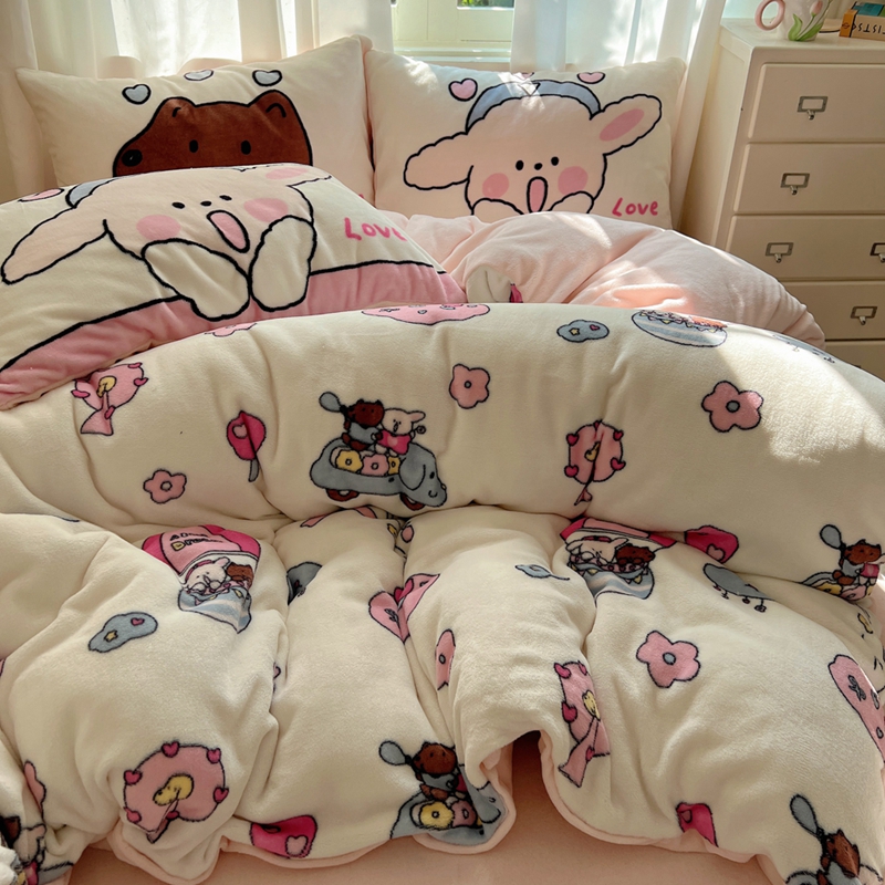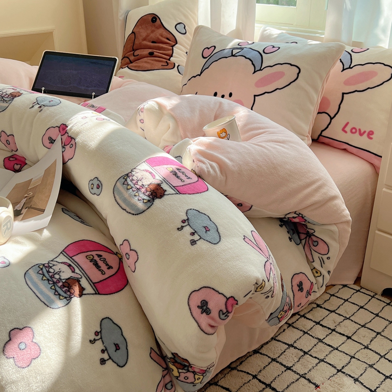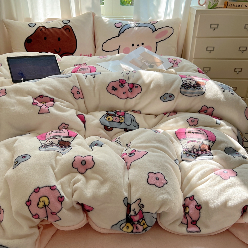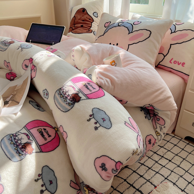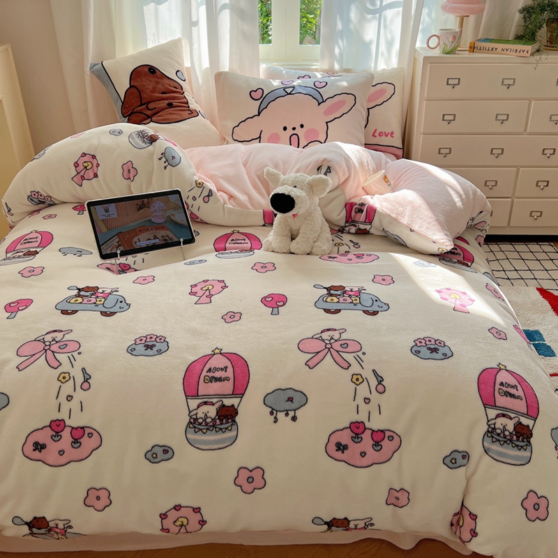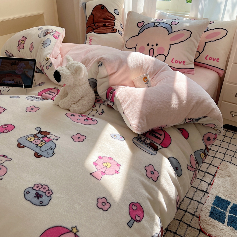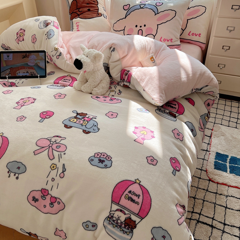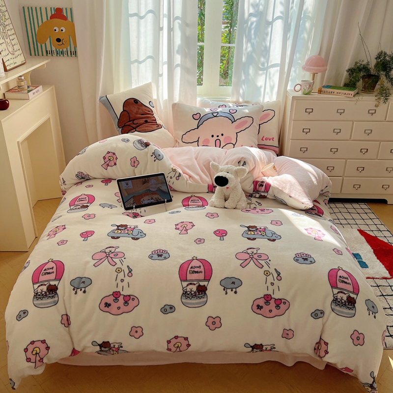 商品名称:桃喜 2024秋冬新品卡通混搭牛奶绒系列四件套 小菜狗和小狼狗