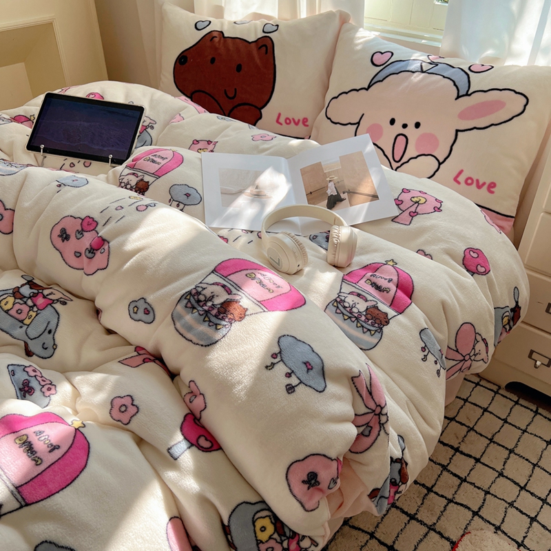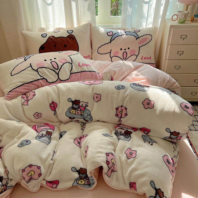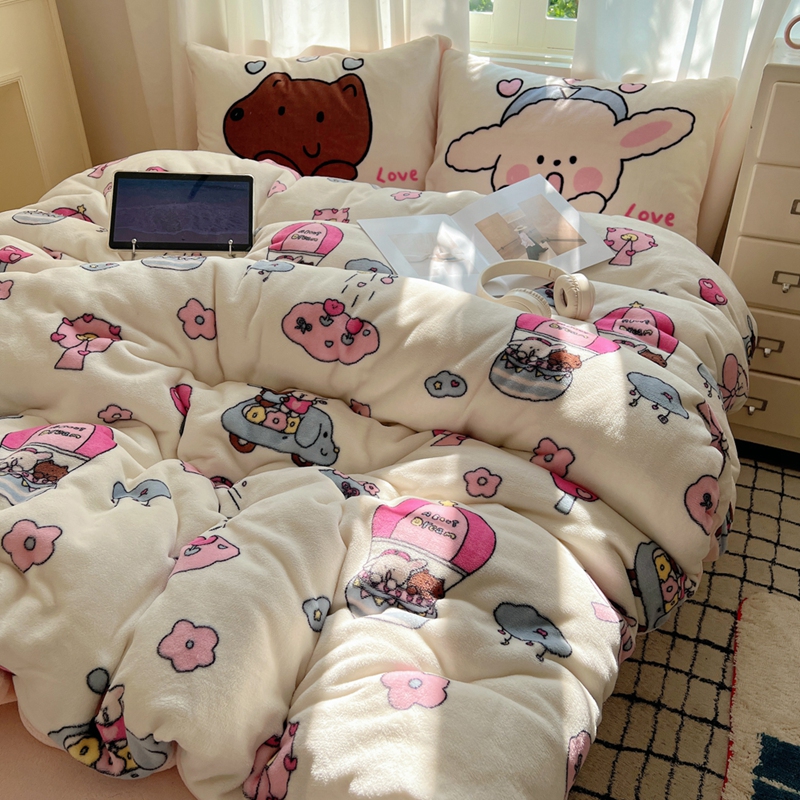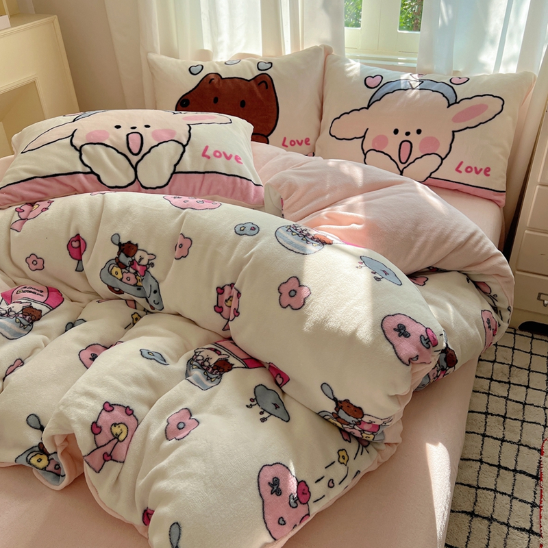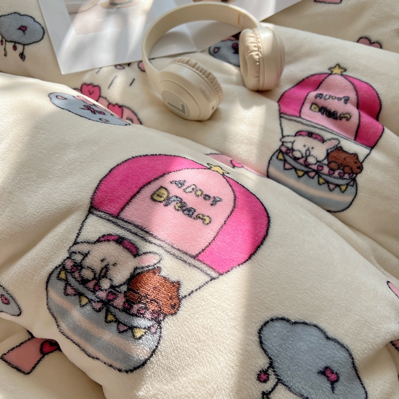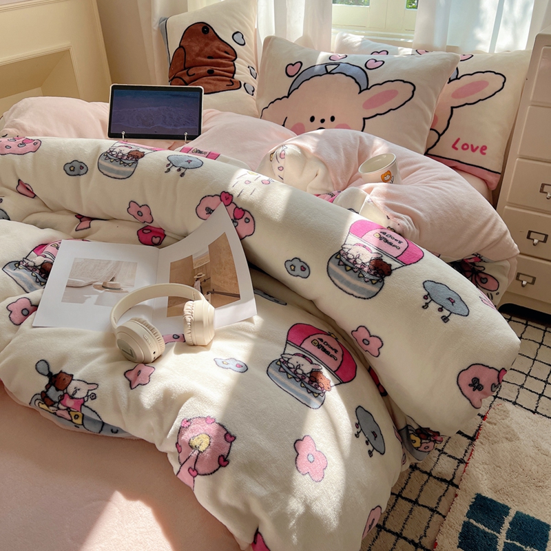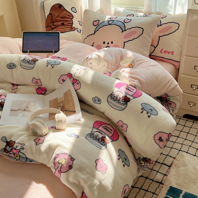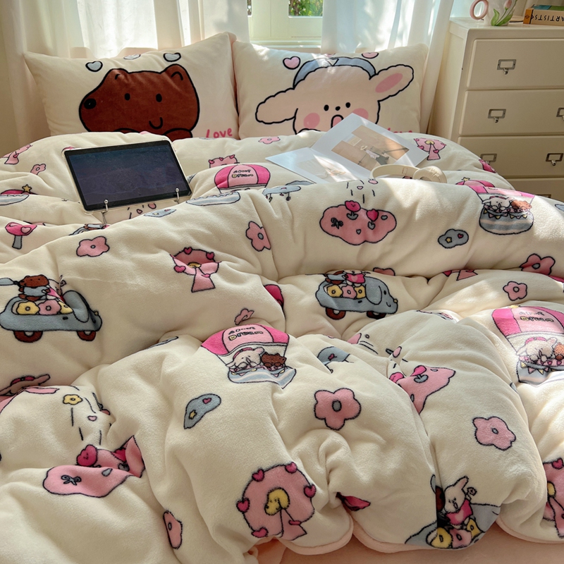 商品名称:桃喜 2024秋冬新品卡通混搭牛奶绒系列四件套 小菜狗和小狼狗