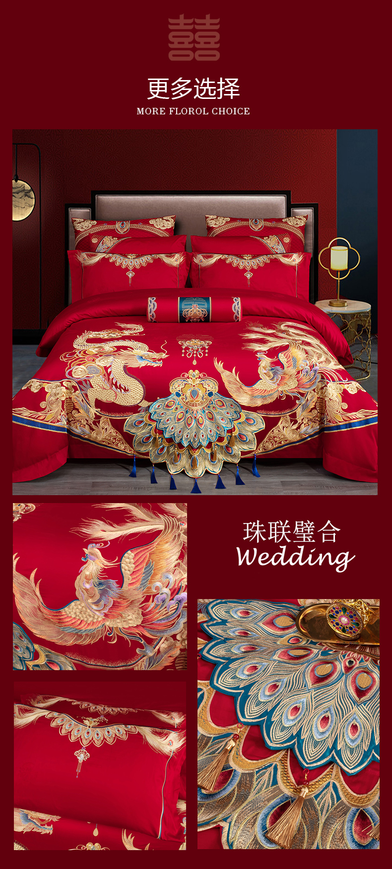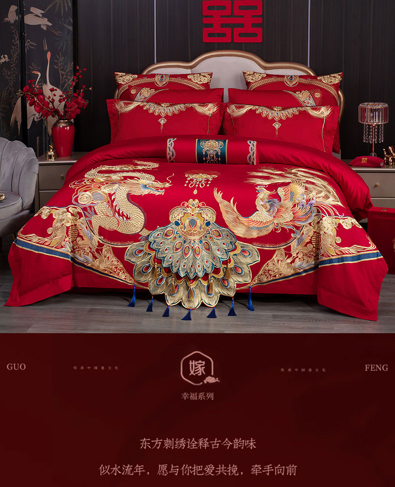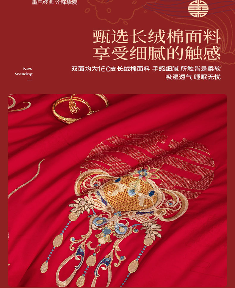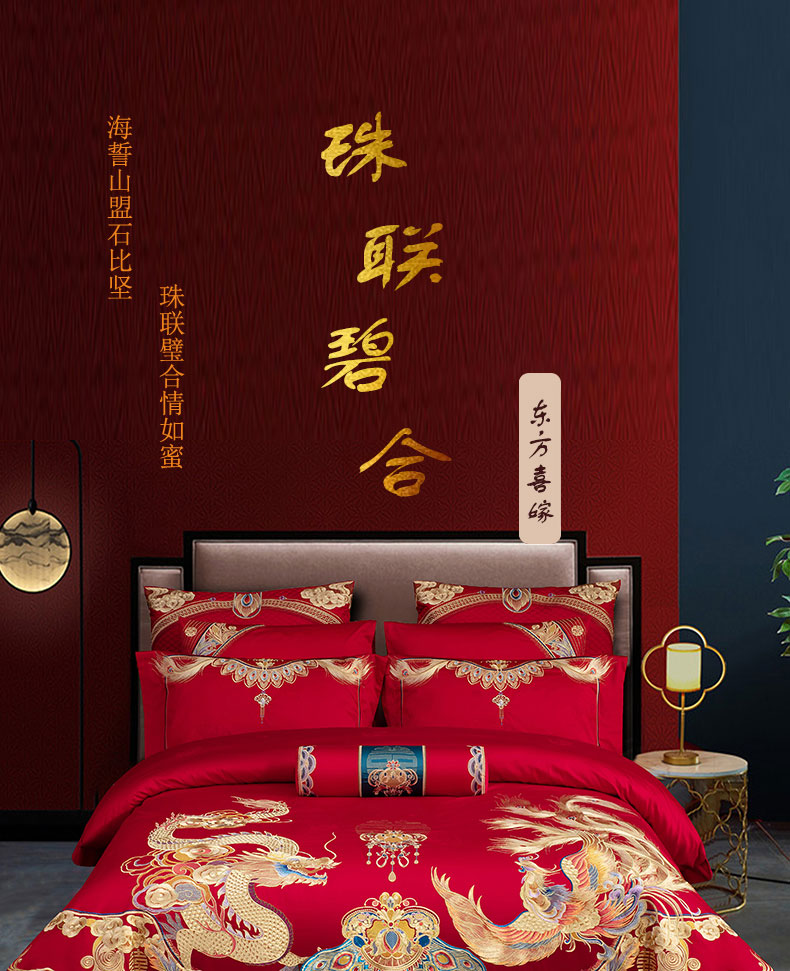 当前位置: 91家纺网 > 商品网购 > 床品套件 > 四件套 > 婚庆四件套 > 蒂爵 全棉纯棉1长绒棉刺绣高端贡缎新中式工艺款婚庆四件套多件套 珠联璧合