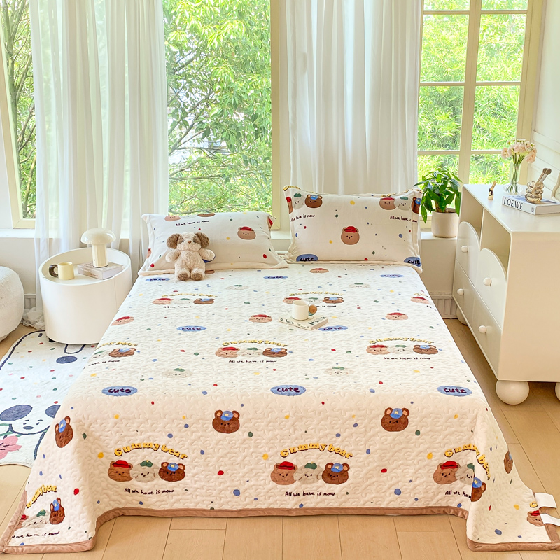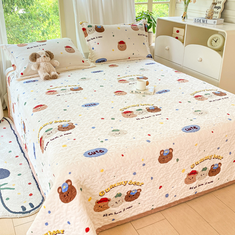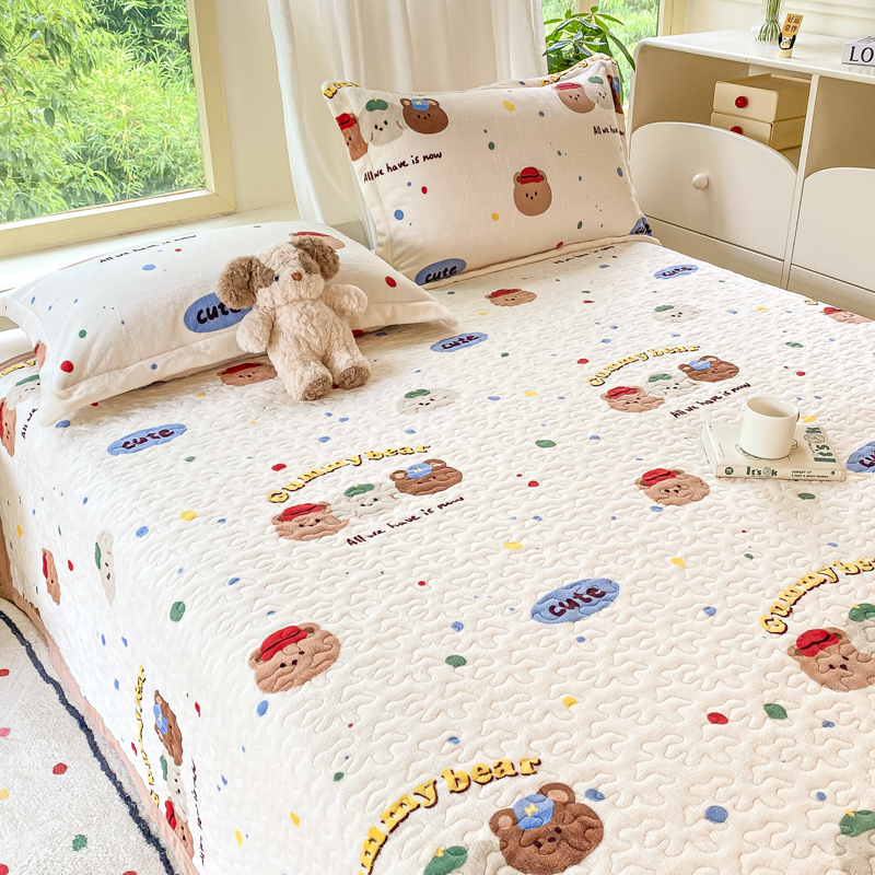 赫梵茜 2024新款高克重牛奶绒夹棉单床盖 复古小熊