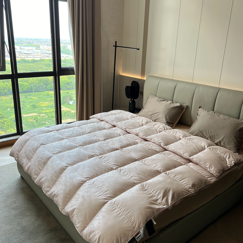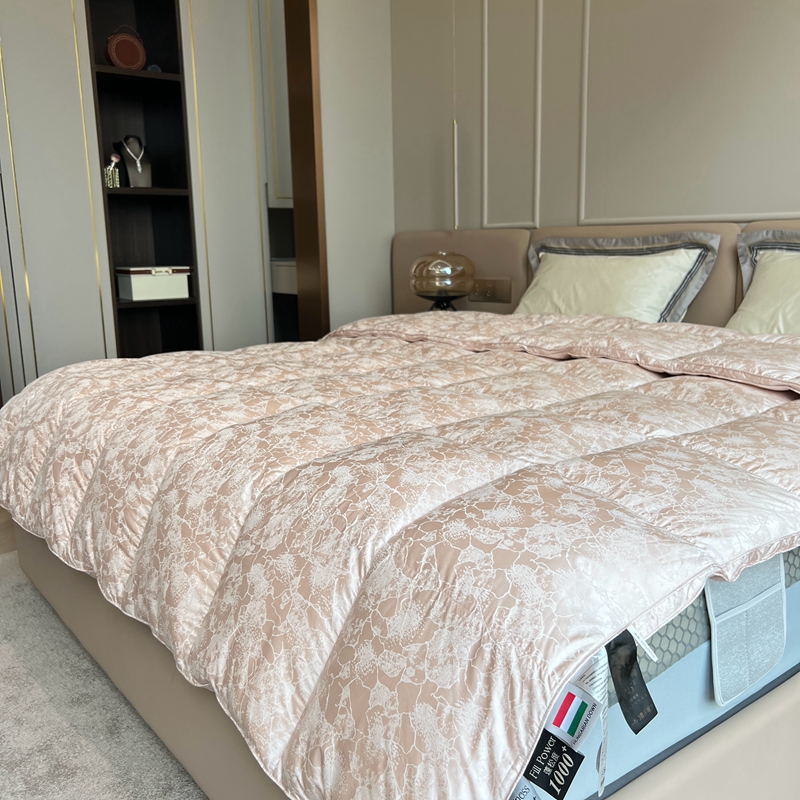 (总)静若居 2025新款高端提花羽绒被鸭绒被贡缎提花单层羽绒被壳,飘颜粉,飘金色,飘高级灰