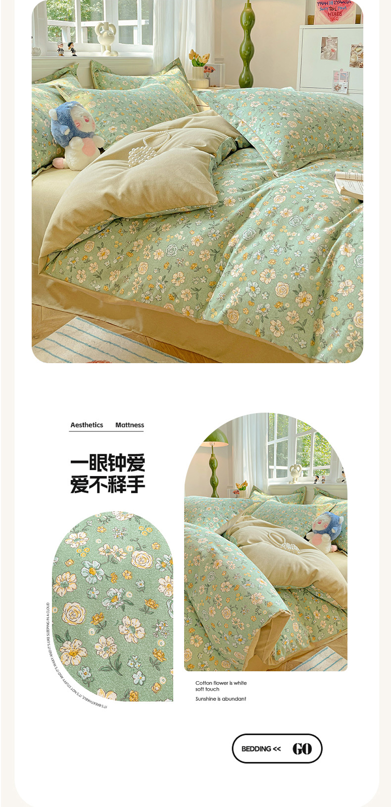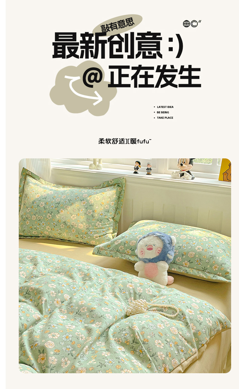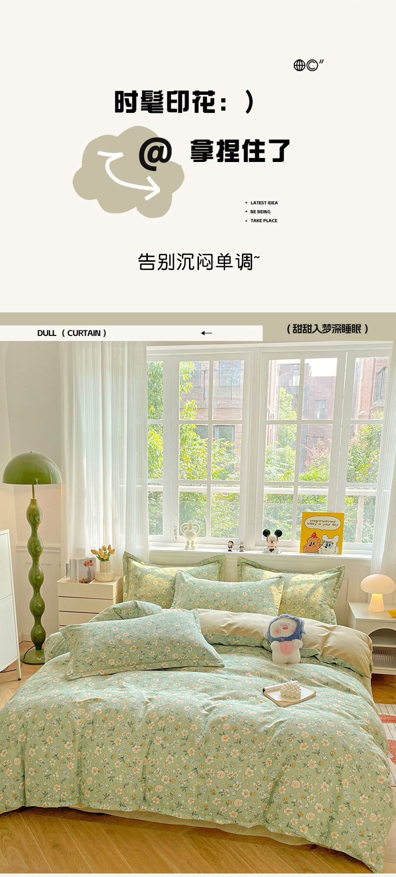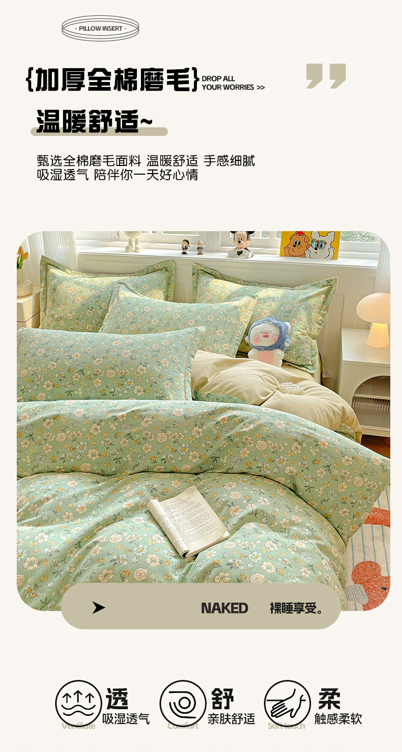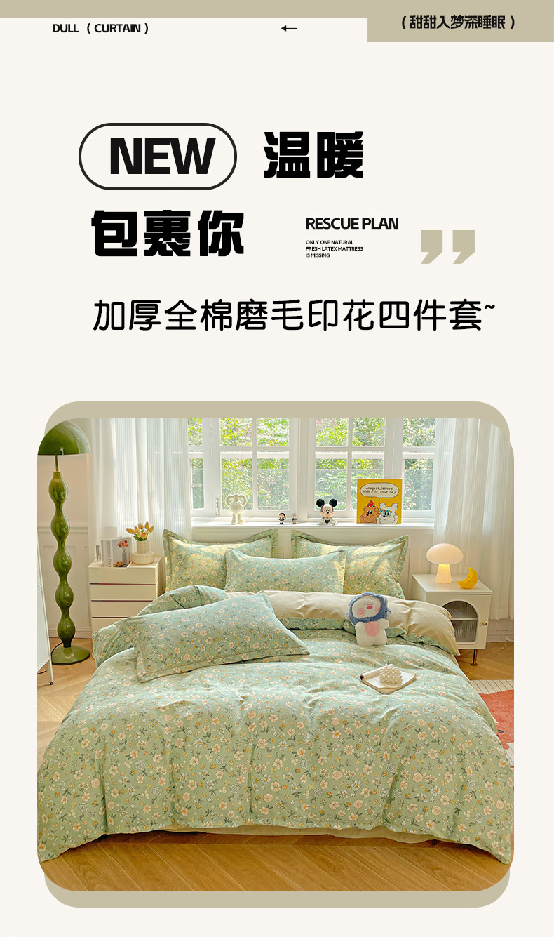 优选良品 2025直播爆款加厚全棉磨毛四件套喷气印花纯棉(一字绣工艺款)学生三件套9月上新 花恬