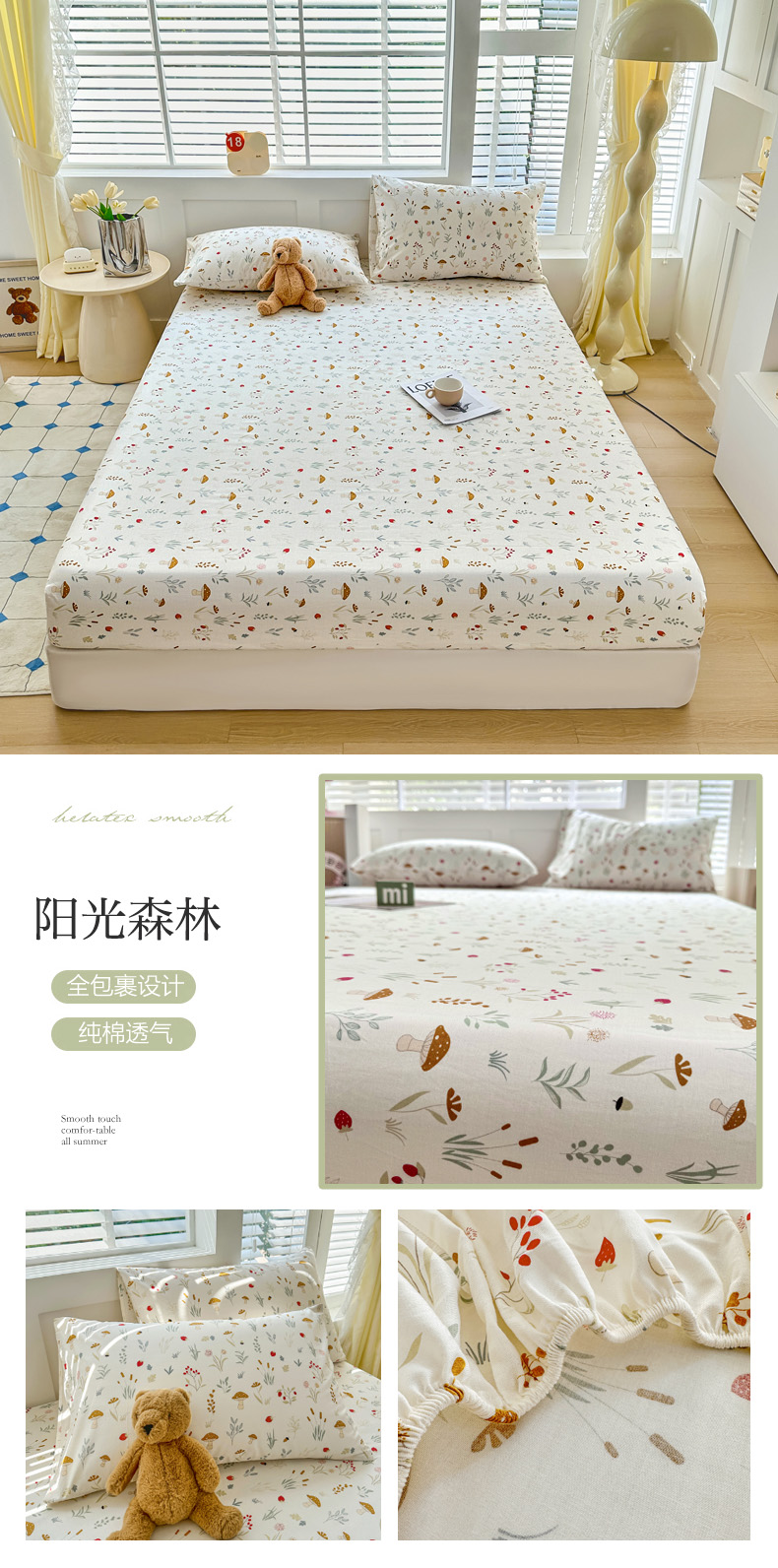 商品名称:柠馨 2024新款简约全棉时尚印花床笠 阳光森林