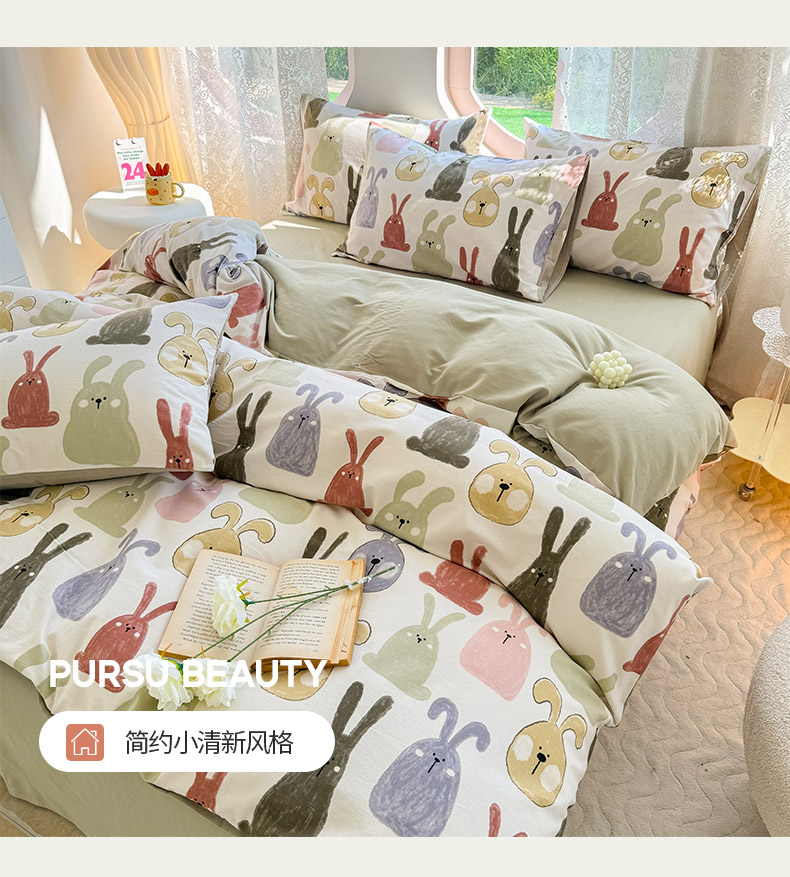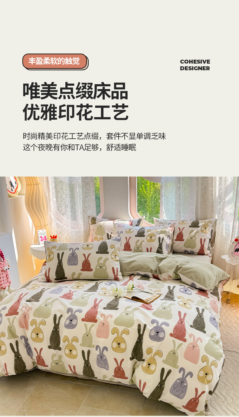 千朵 2024新款全棉磨毛小清新印花四件套 妮克
