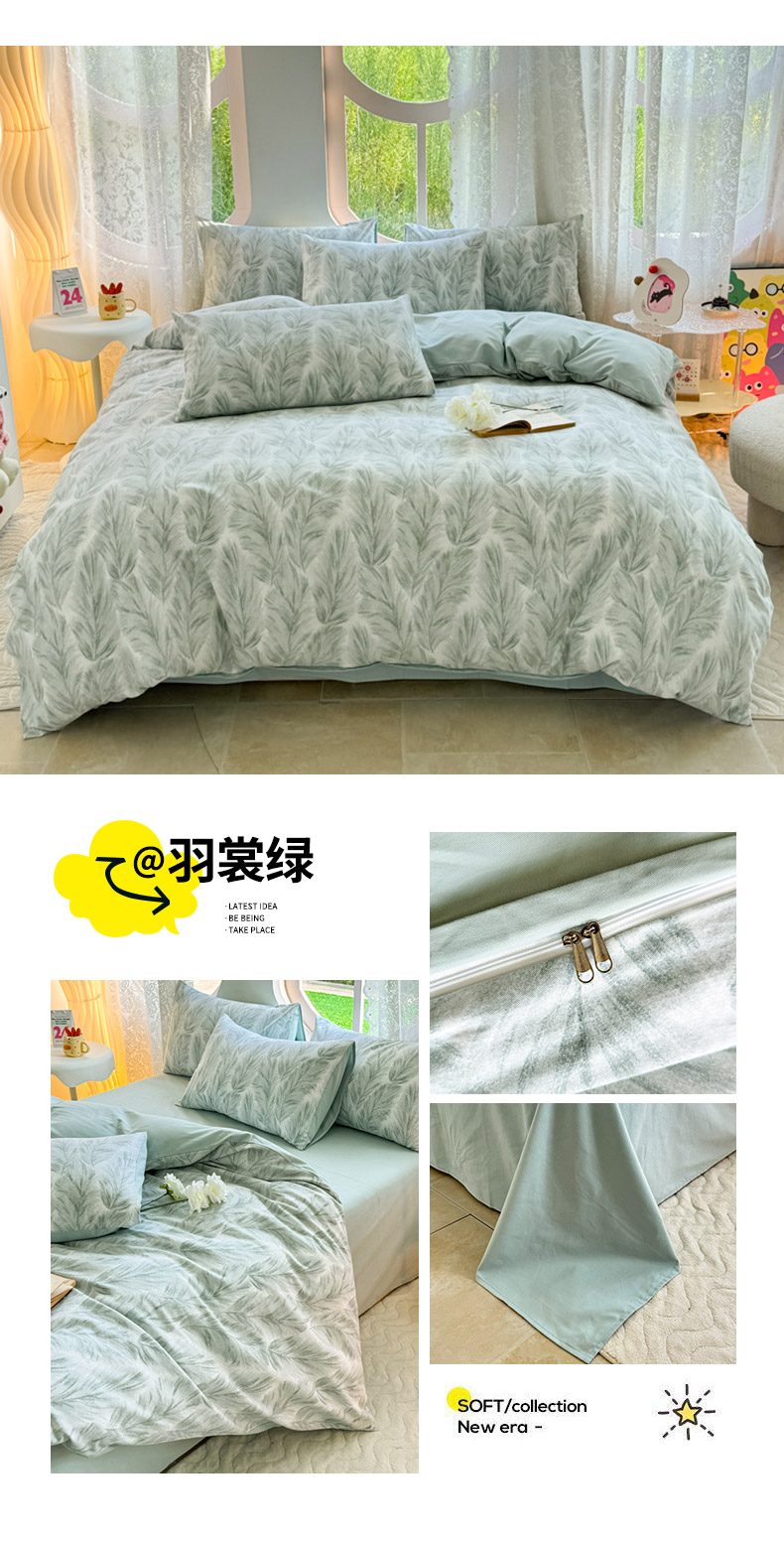 千朵 2024新款全棉磨毛小清新印花四件套 羽裳绿