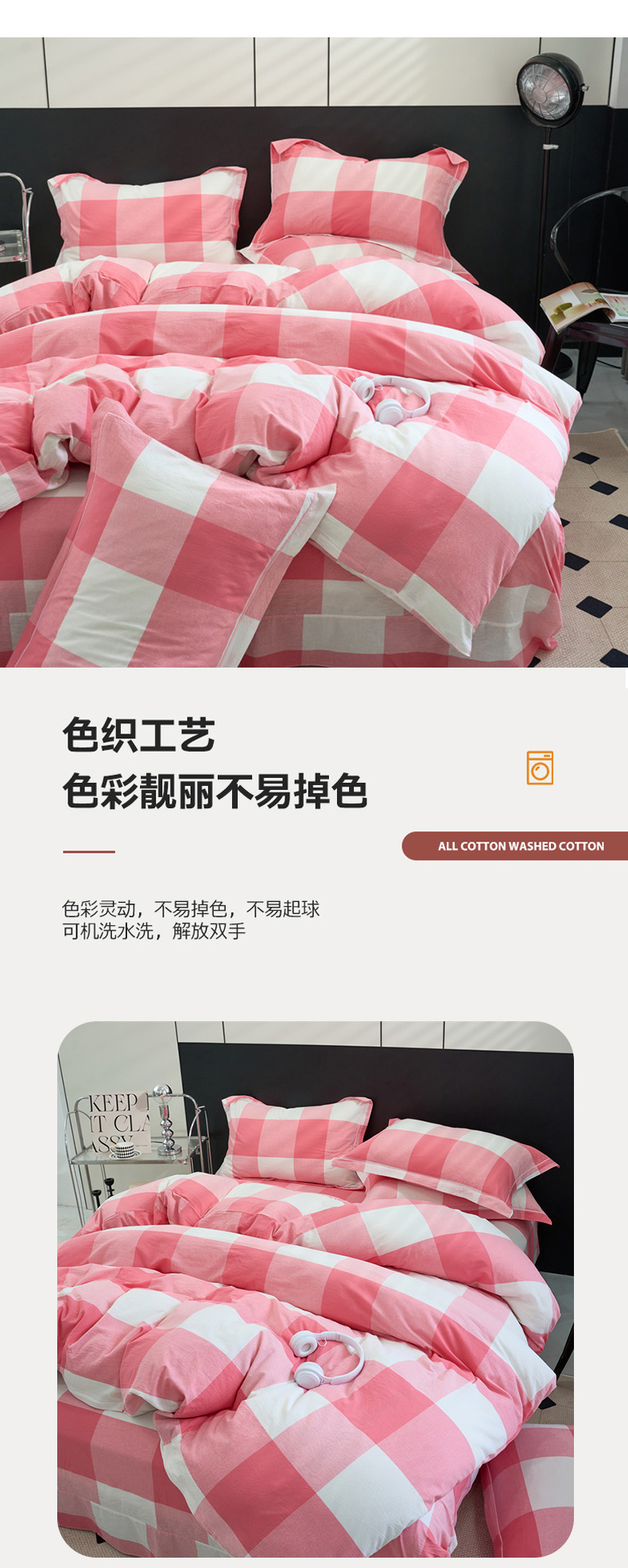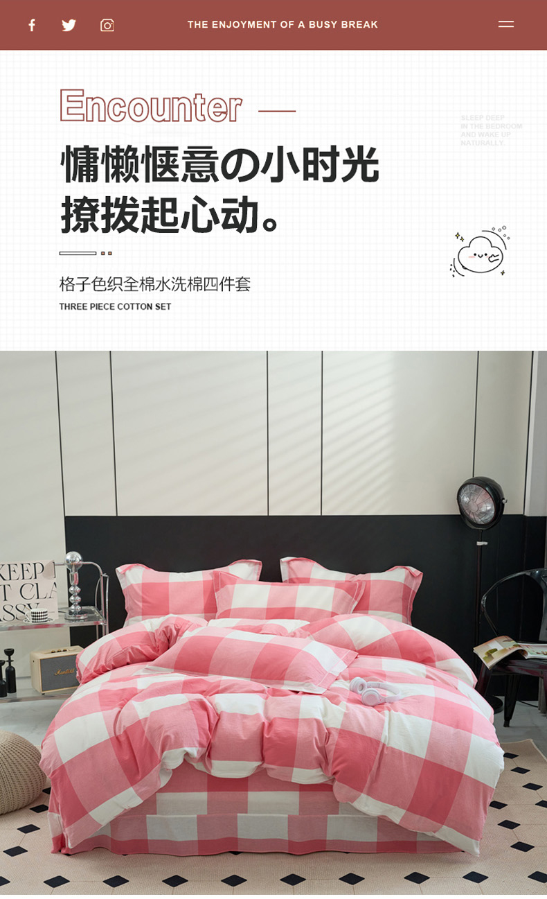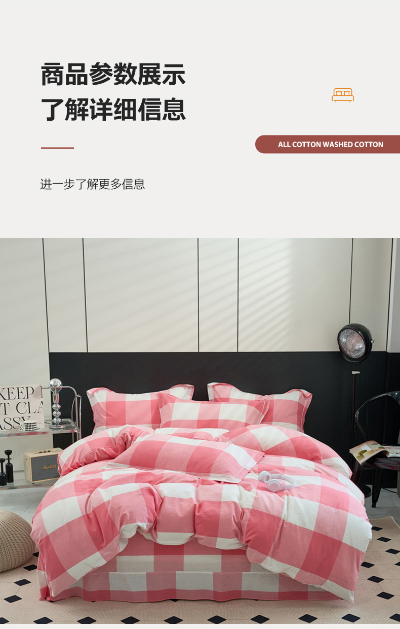 当前位置: 91家纺网 > 商品网购 > 床品套件 > 四件套 > 水洗棉四件套 > 三沁家居 2025新款格子色织全棉水洗棉四件套直播爆款量大价优 粉白大格
