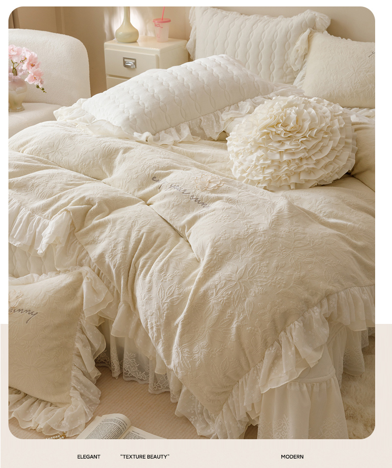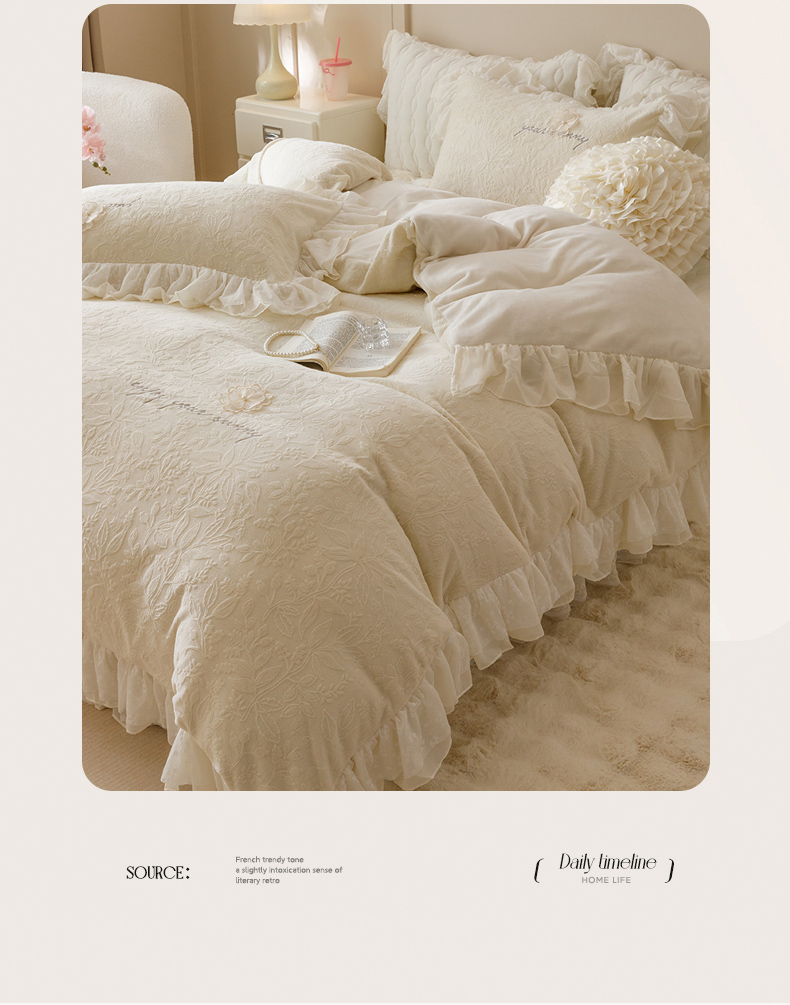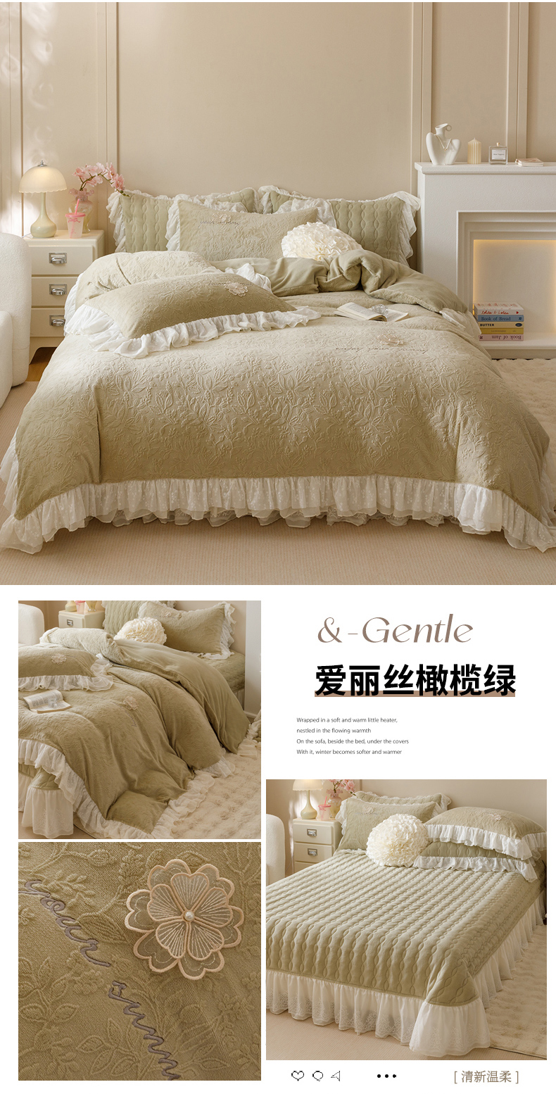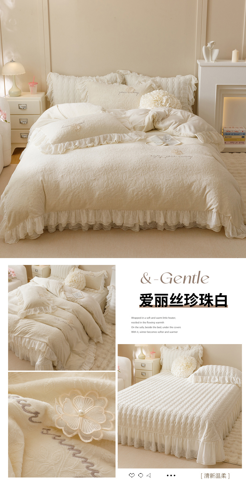 商品名称:(总)胜权家纺 2024秋冬新款法式牛奶绒蕾丝床盖四件套系列-爱丽丝