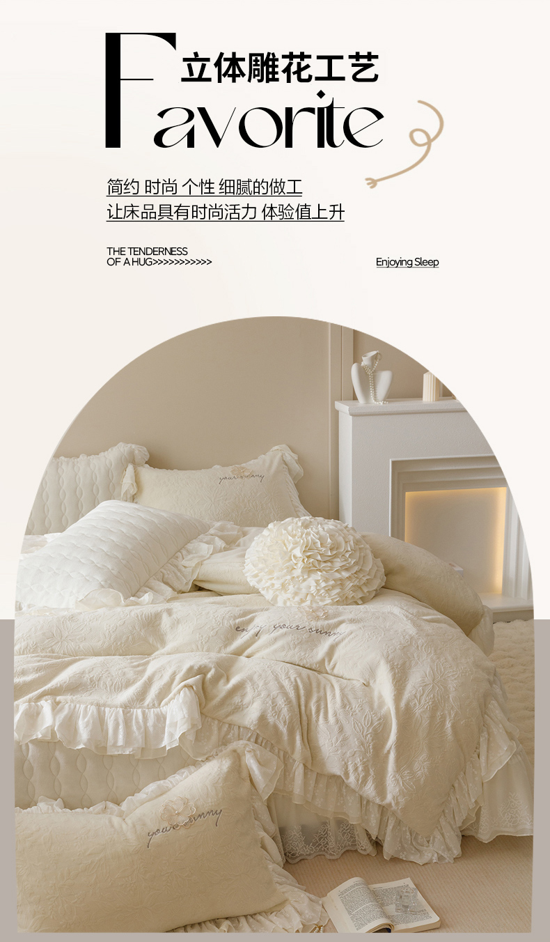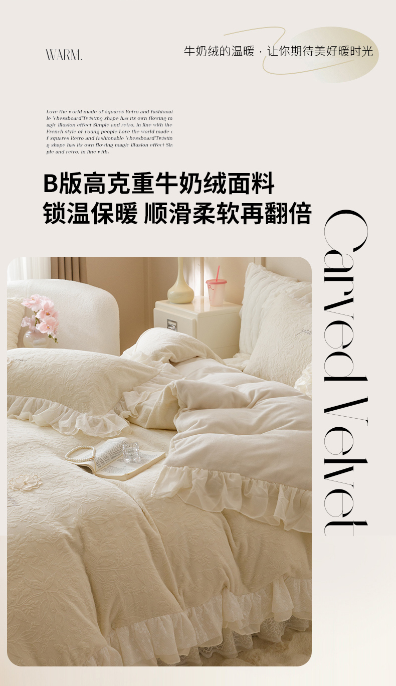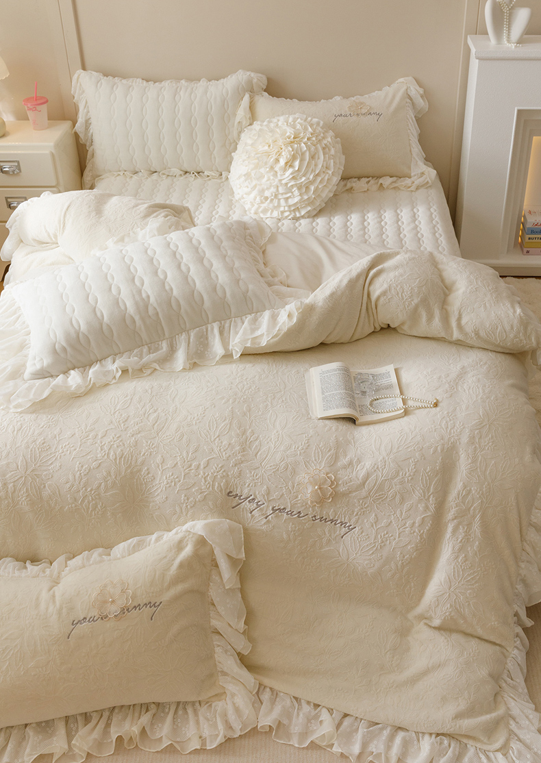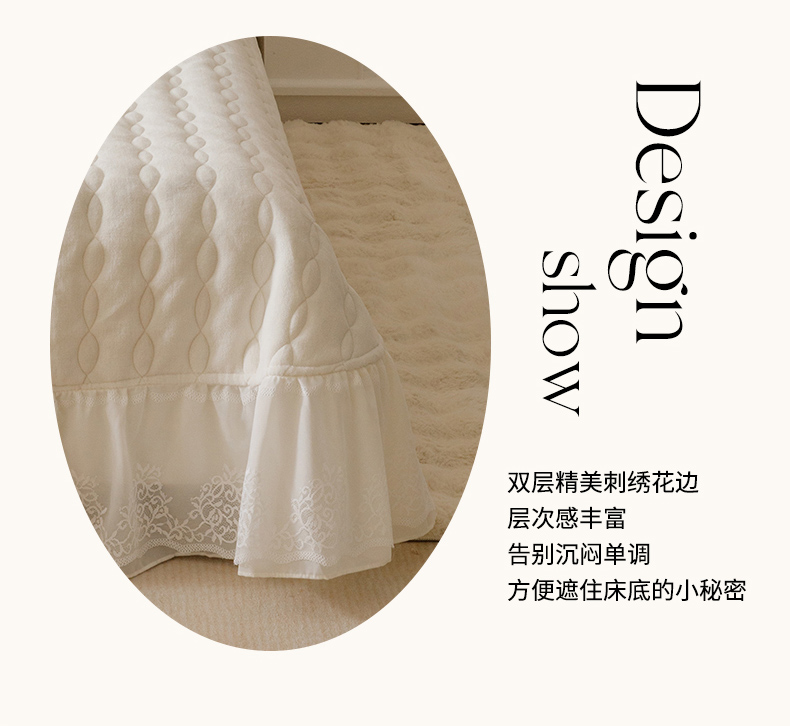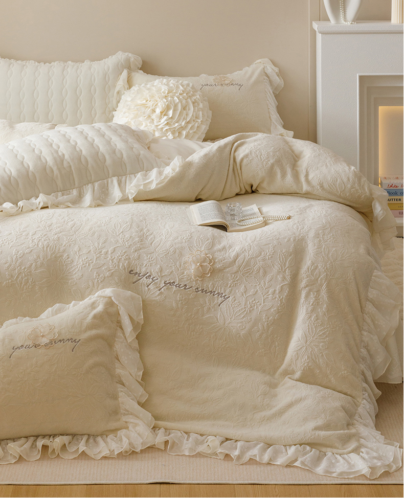 商品名称:(总)胜权家纺 2024秋冬新款法式牛奶绒蕾丝床盖四件套系列-爱丽丝