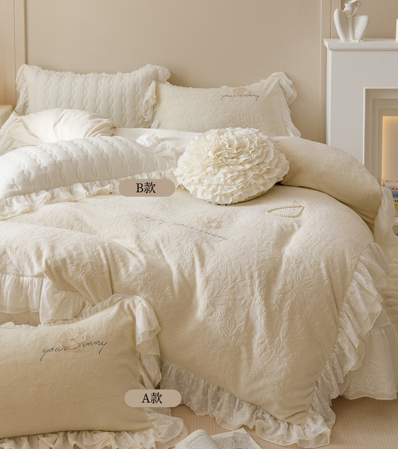 (总)胜权家纺 2024秋冬新款法式牛奶绒蕾丝床盖四件套系列-爱丽丝