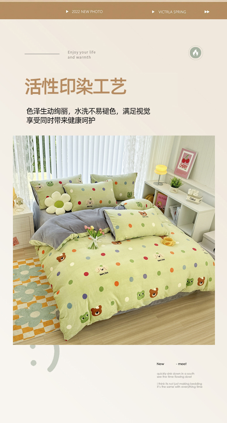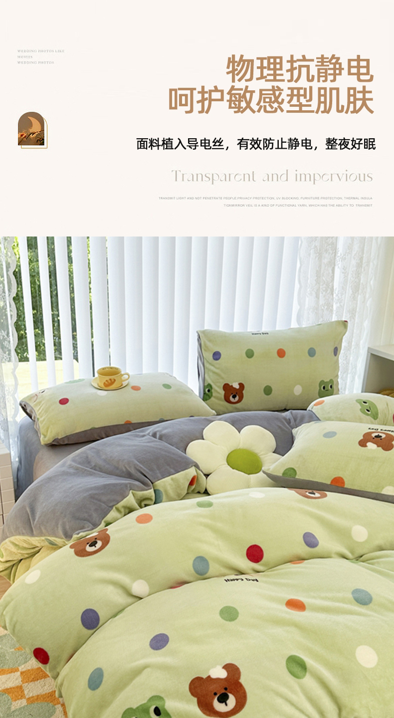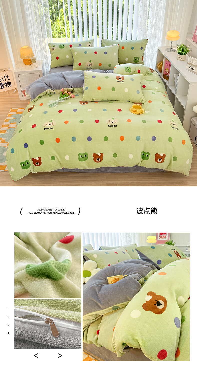 商品名称:觅妮家纺 2025新款全消光200g高克重秋冬加厚印花牛奶绒单被套 波点熊