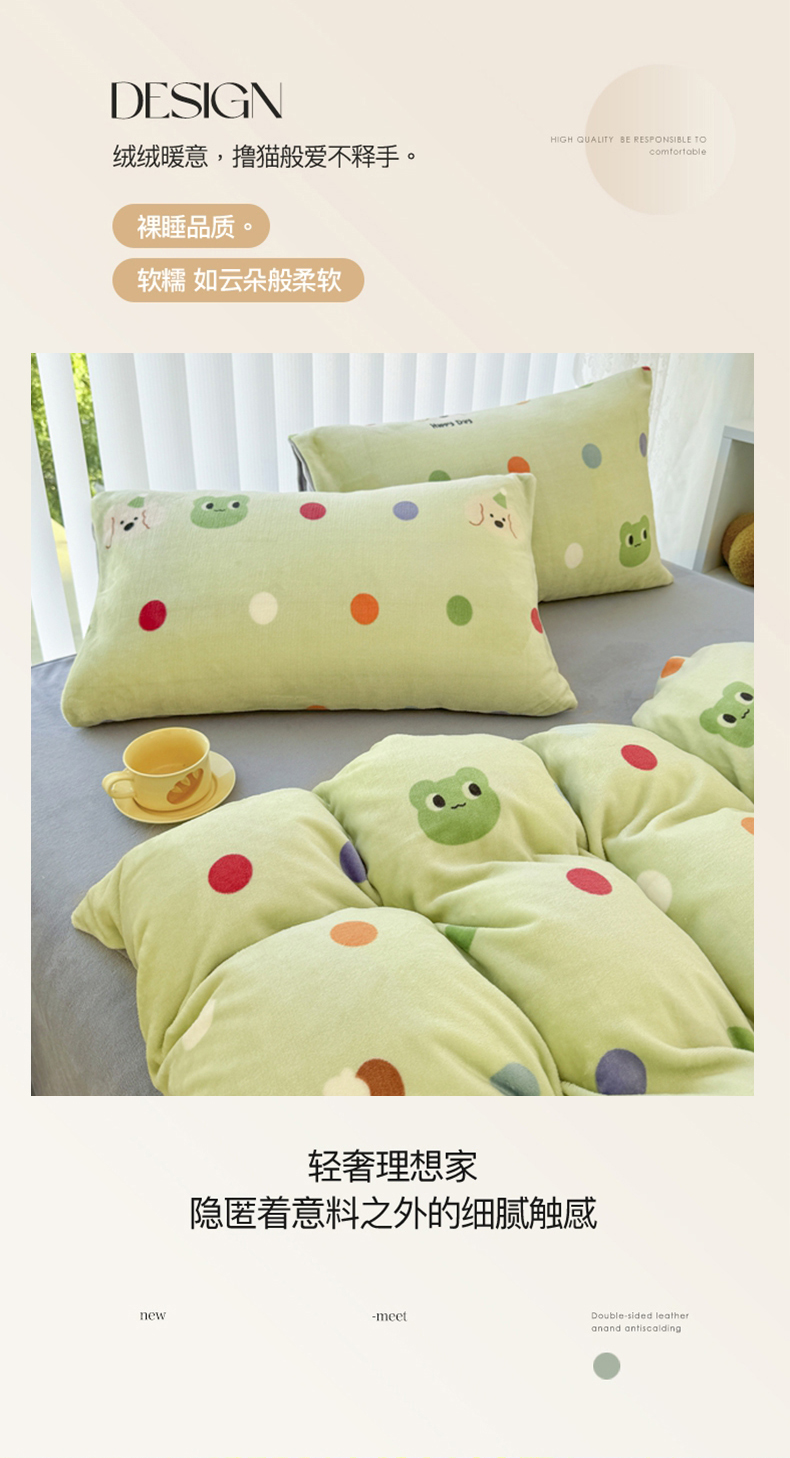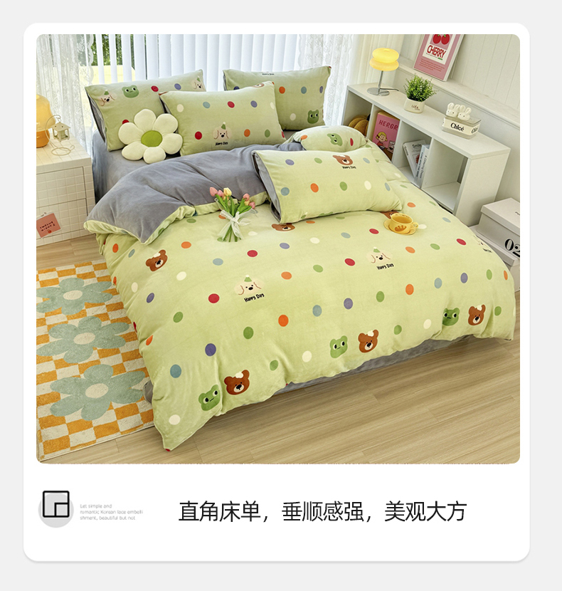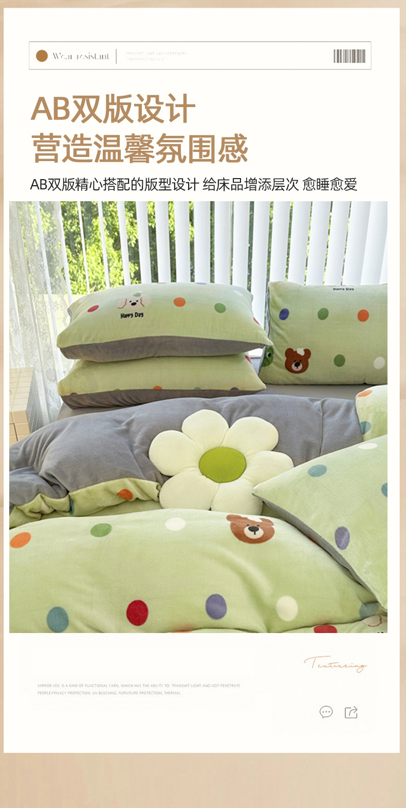 商品名称:觅妮家纺 2025新款全消光200g高克重秋冬加厚印花牛奶绒单被套 波点熊