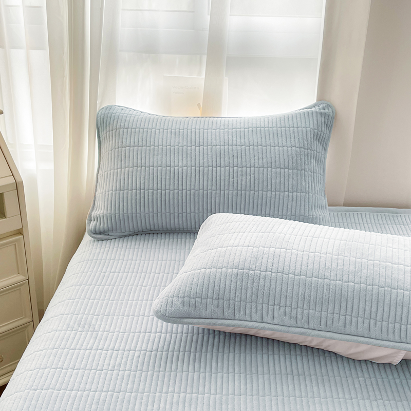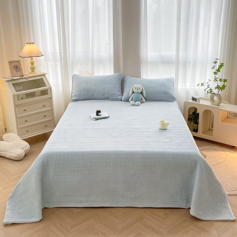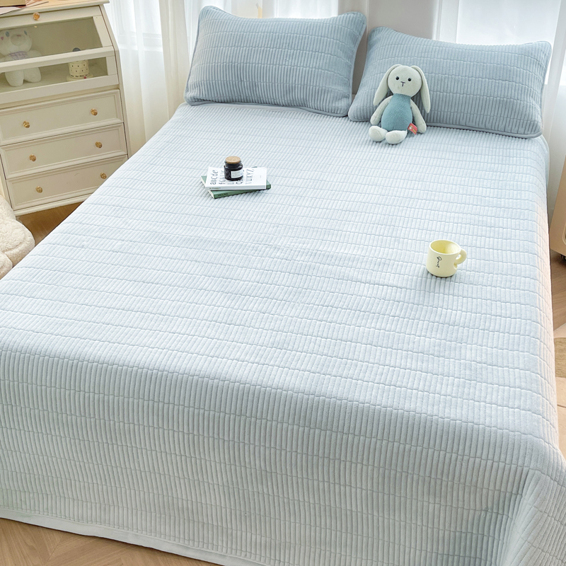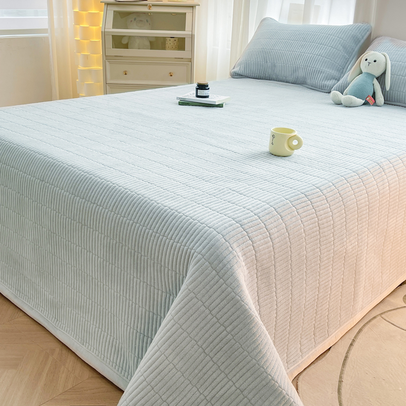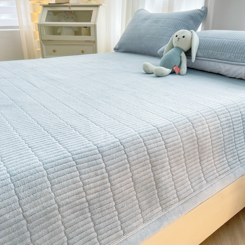 梵朴 2024新款牛奶绒直角包边床盖 简约淡雅蓝