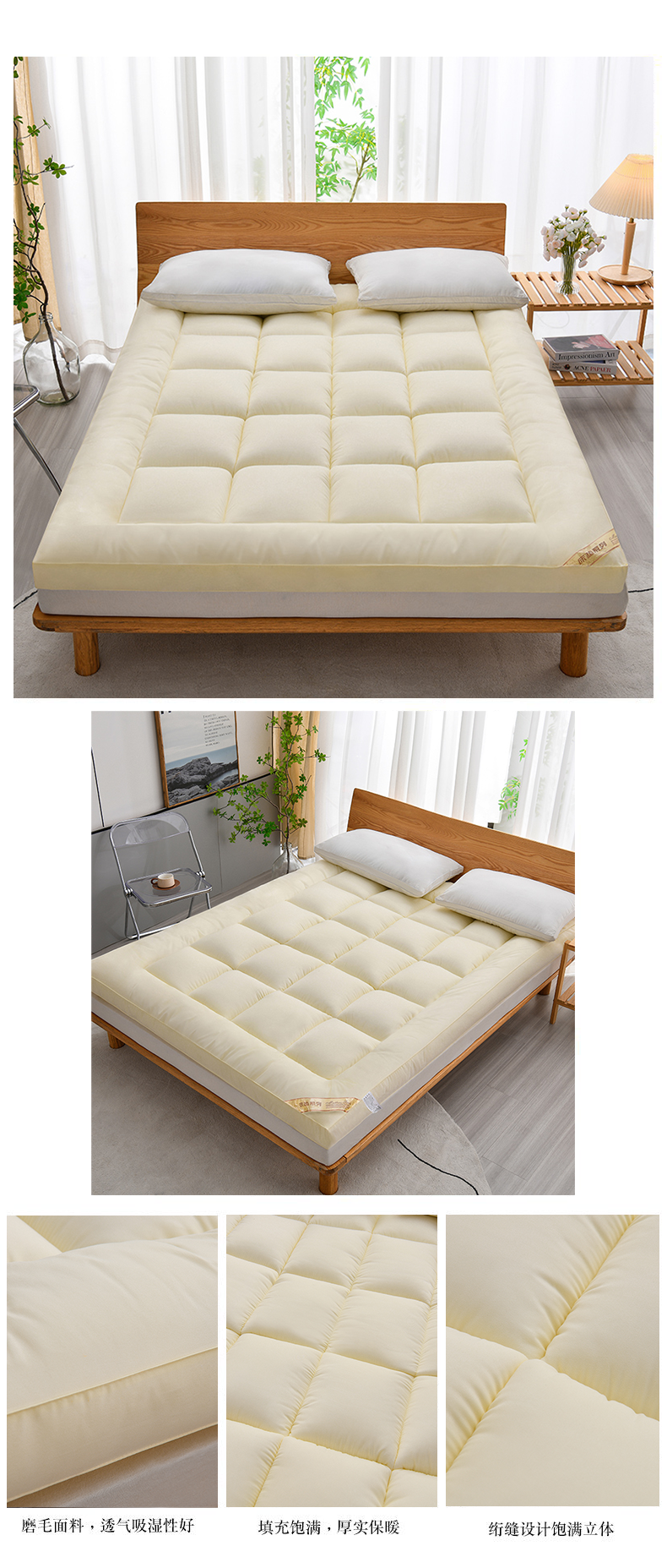 商品名称:预言家纺 2024新款3D磨毛羽丝绒羊羔绒床垫 米黄