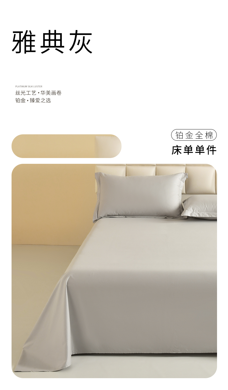 商品名称:元元被芯 2025款纯色全丝光-全精梳高密纺-铂金A类全棉单床单 雅典灰
