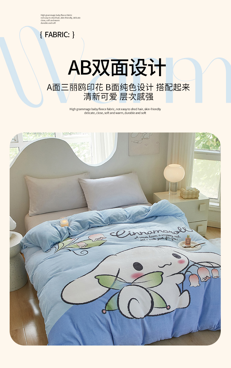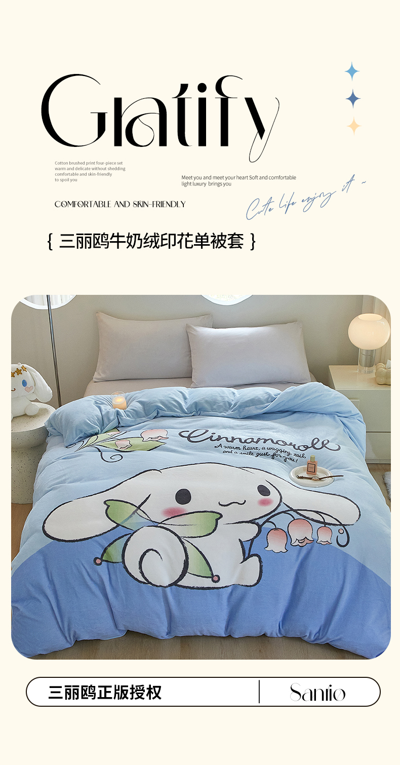蘭菲家纺 2024新款牛奶绒卡通三丽鸥单品被套 清新