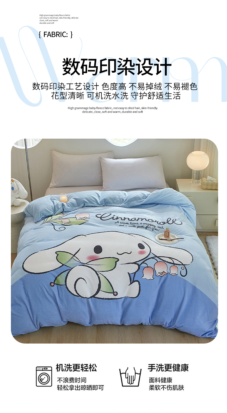 商品名称:蘭菲家纺 2024新款牛奶绒卡通三丽鸥单品被套 清新