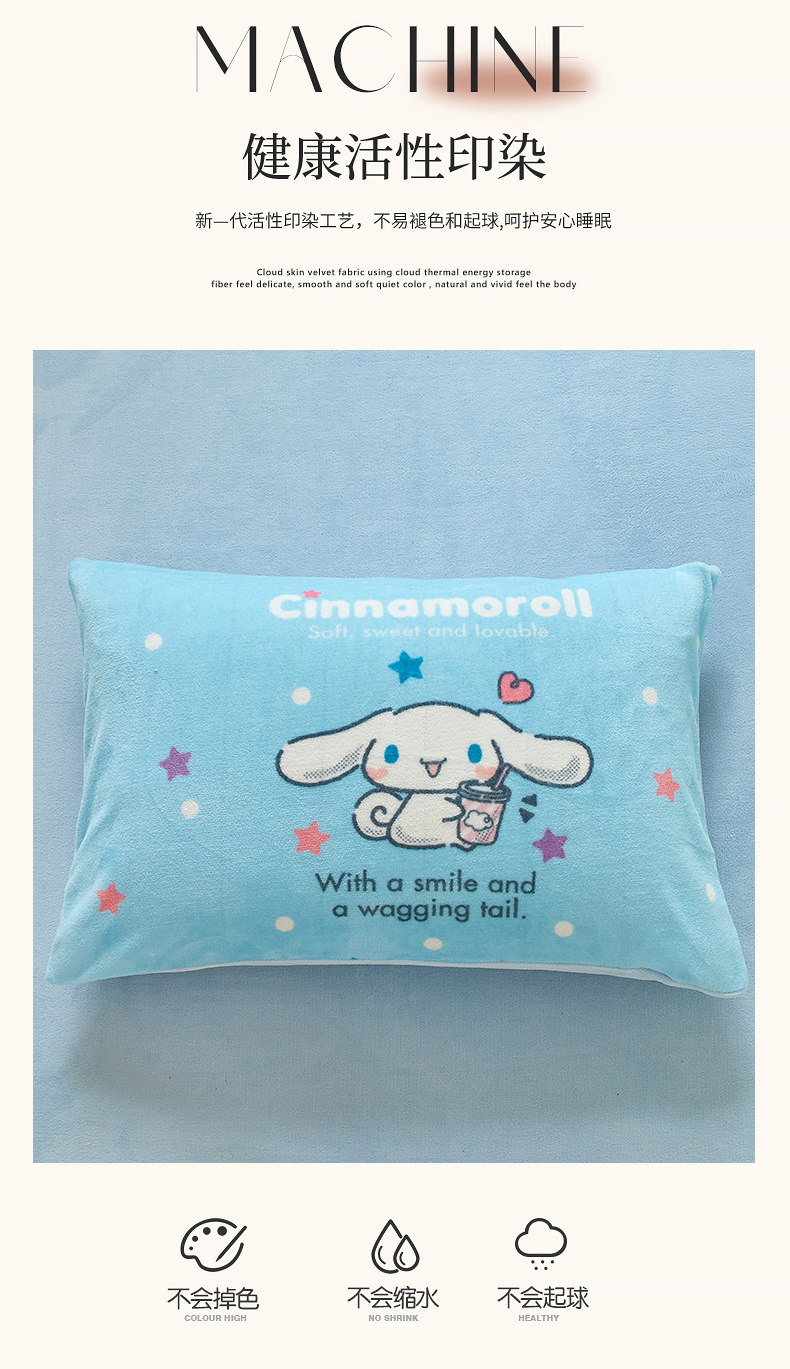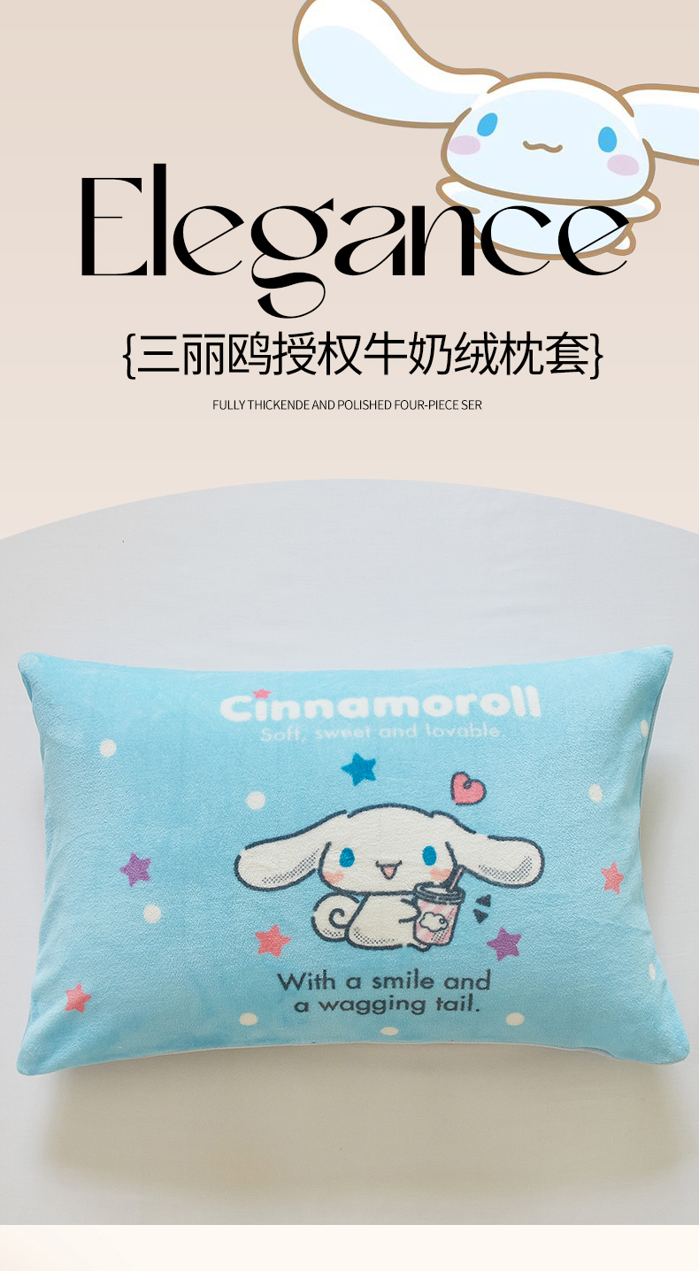 商品名称:蘭菲家纺 2024新款牛奶绒卡通三丽鸥单品枕套 奶茶