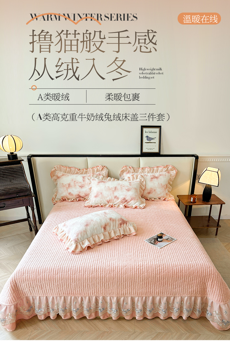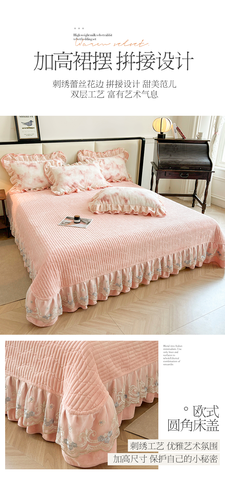 (总)宜凡家纺 2025新款兔绒提花牛奶绒夹棉床裙四件套,爱心 少女粉,爱心 粉紫,爱心 驼色,蝶舞 大红,蝶舞 米色,蝶舞 浅紫,蝶舞 玉色,简爱 苍青,简爱 豆沙紫,简爱 玉色,樱桃 苍青,樱桃 豆沙紫,樱桃 奶油白