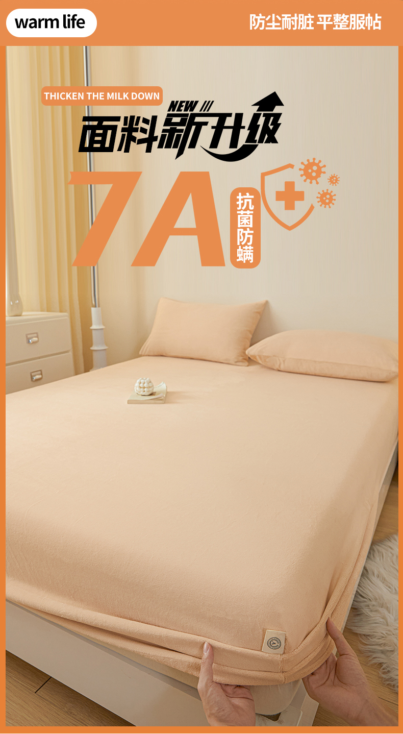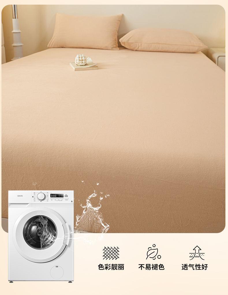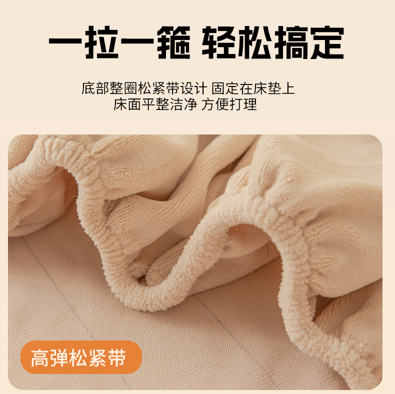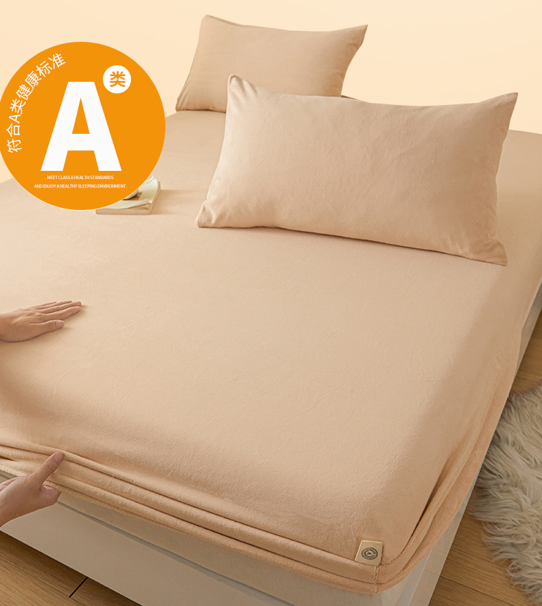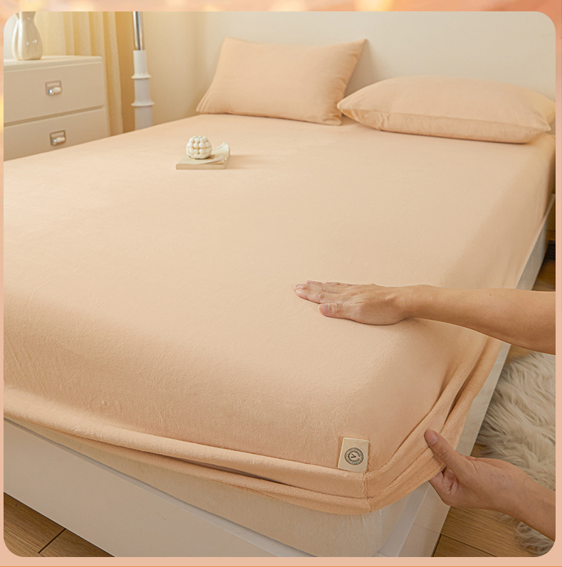 • 91家纺网 家纺一手货源 找家纺 鑫钰 2024秋冬新款加厚牛奶绒简约纯色床笠 卡其