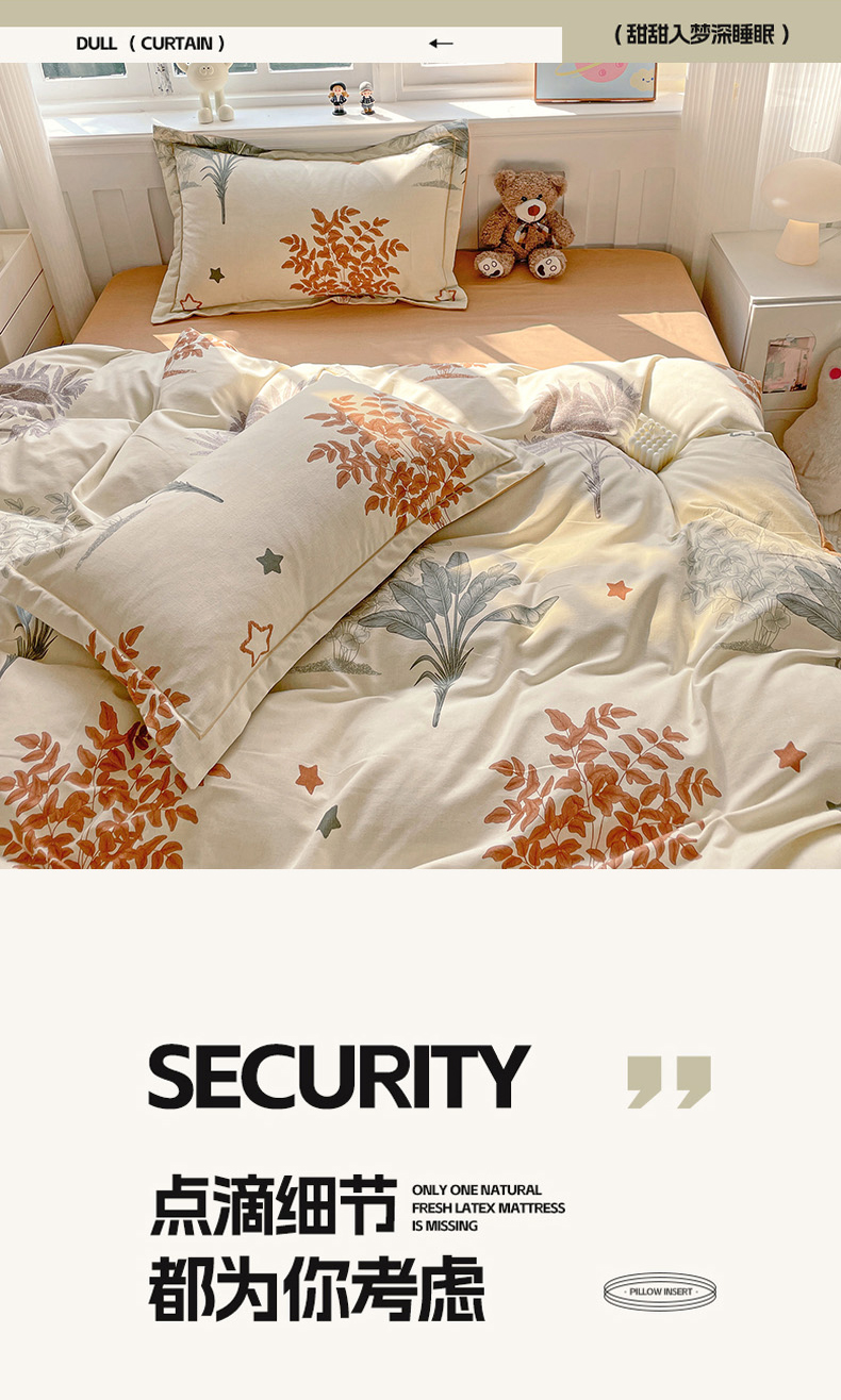 商品名称:暖芯优选 2025新款直播爆款加厚全棉磨毛四件套喷气印花纯棉(一字绣工艺款)学生三件套10月上新 浅香