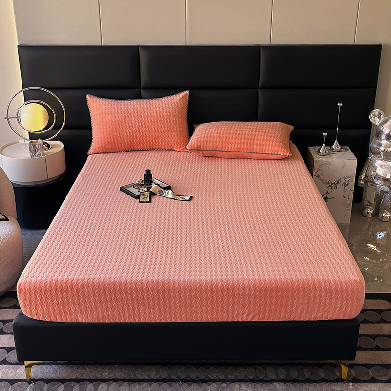 • 91家纺网 家纺一手货源 找家纺 菡宝 2024新款素色烂花床笠 菱形杏