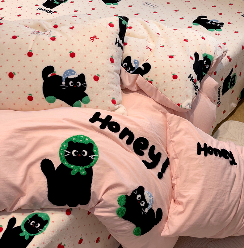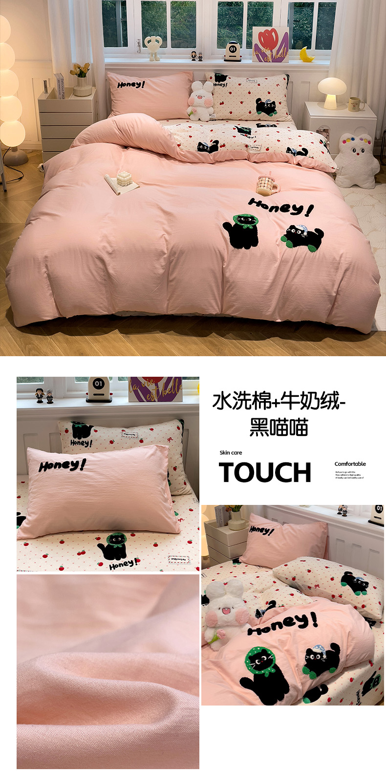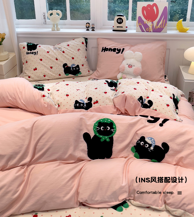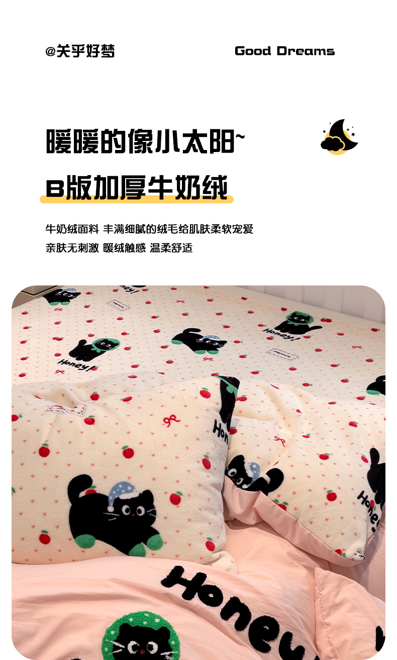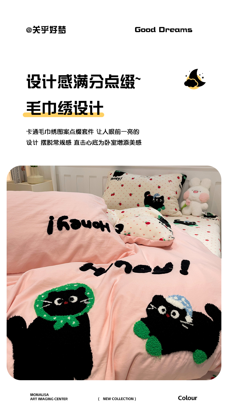 当前位置: 91家纺网 > 商品网购 > 床品套件 > 四件套 > 其它四件套 > 奈颜 2024新款冬季棉+绒毛巾绣四件套A版超柔水洗棉+B版加厚牛奶绒 黑喵喵