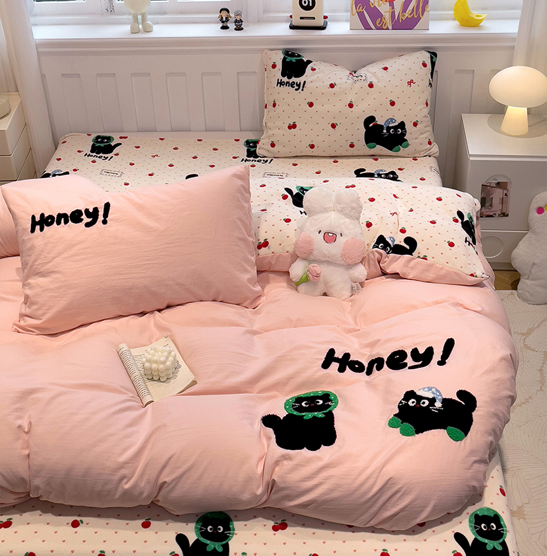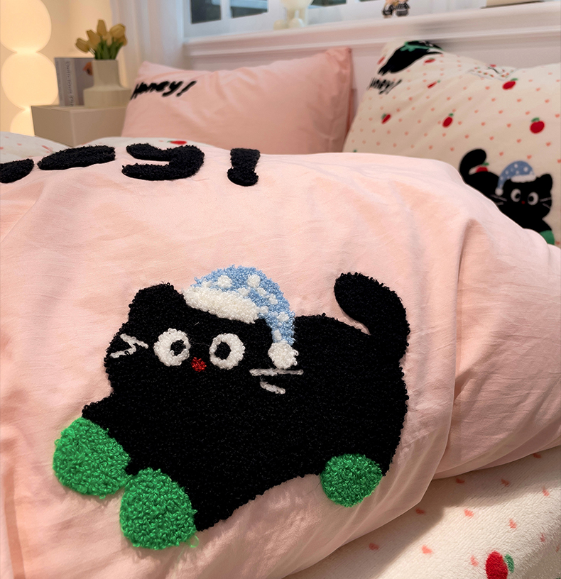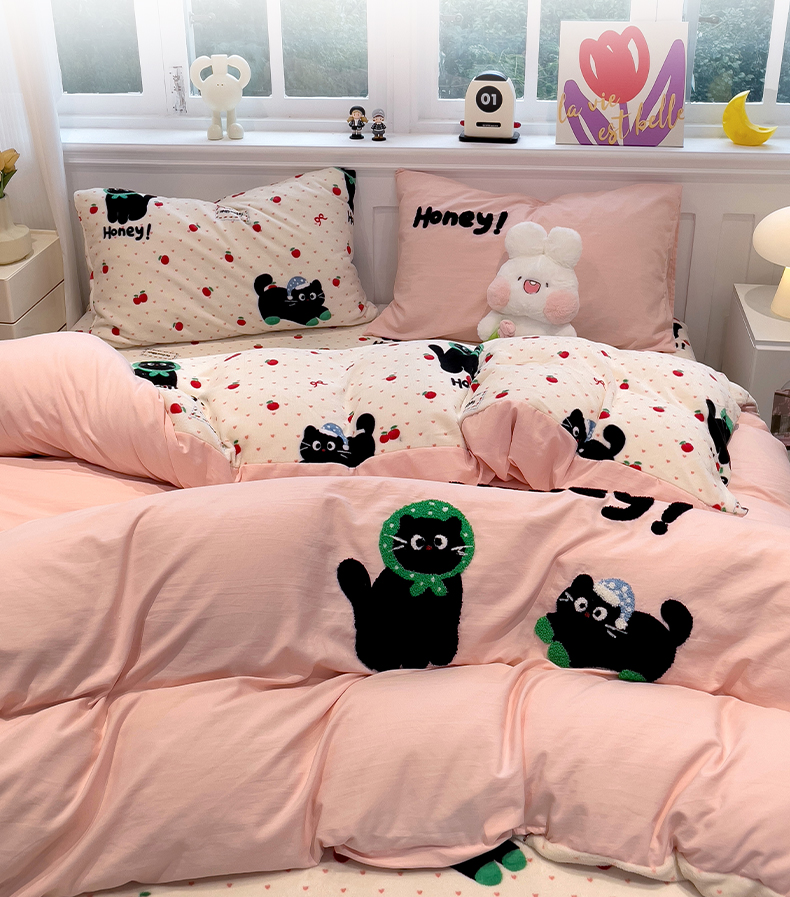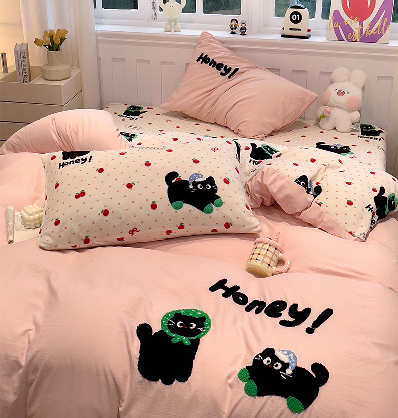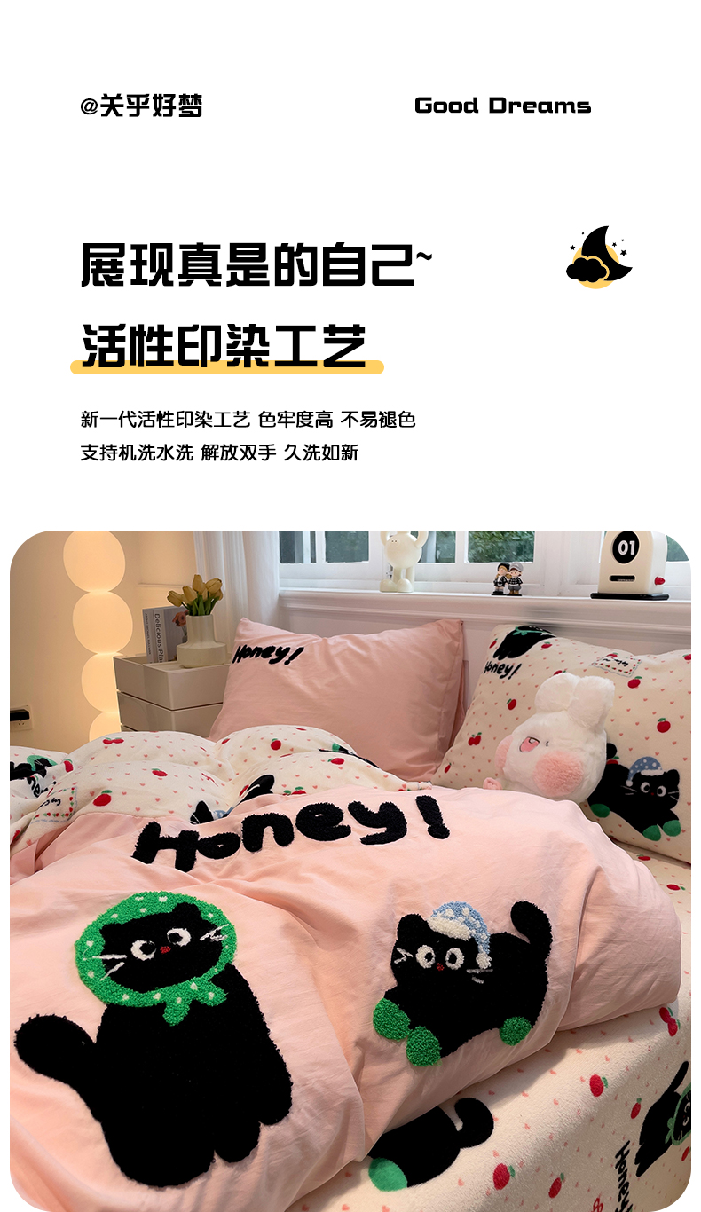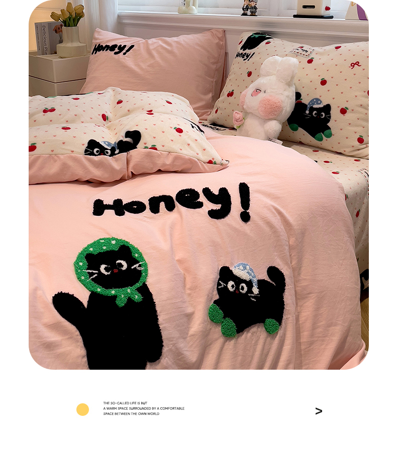 当前位置: 91家纺网 > 商品网购 > 床品套件 > 四件套 > 其它四件套 > 奈颜 2024新款冬季棉+绒毛巾绣四件套A版超柔水洗棉+B版加厚牛奶绒 黑喵喵