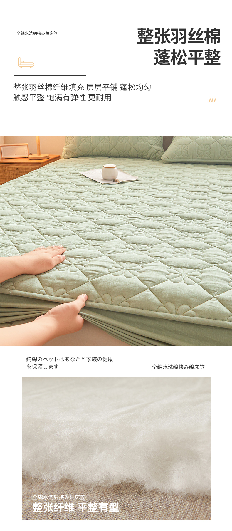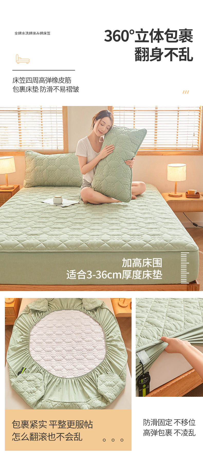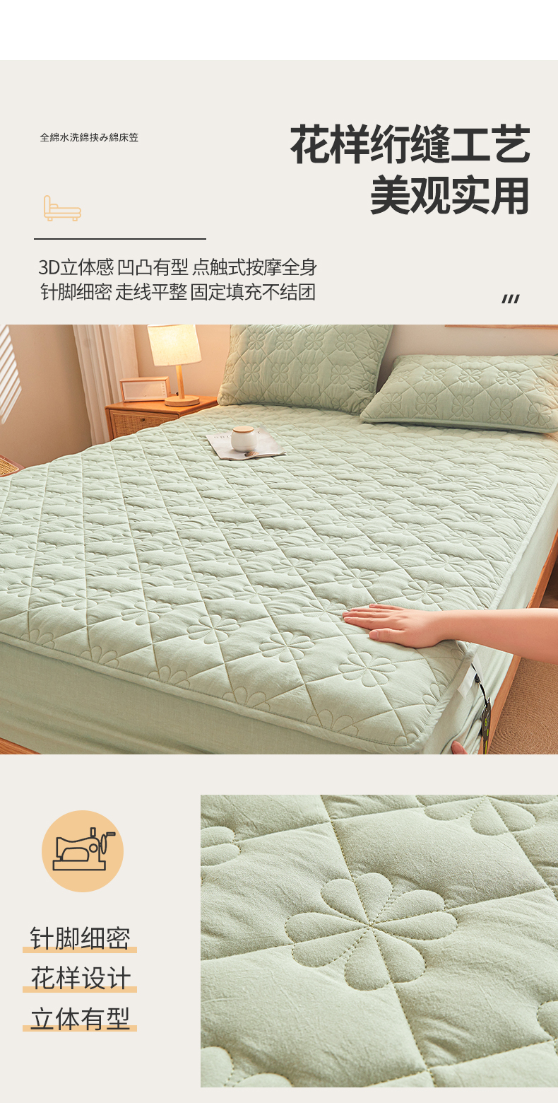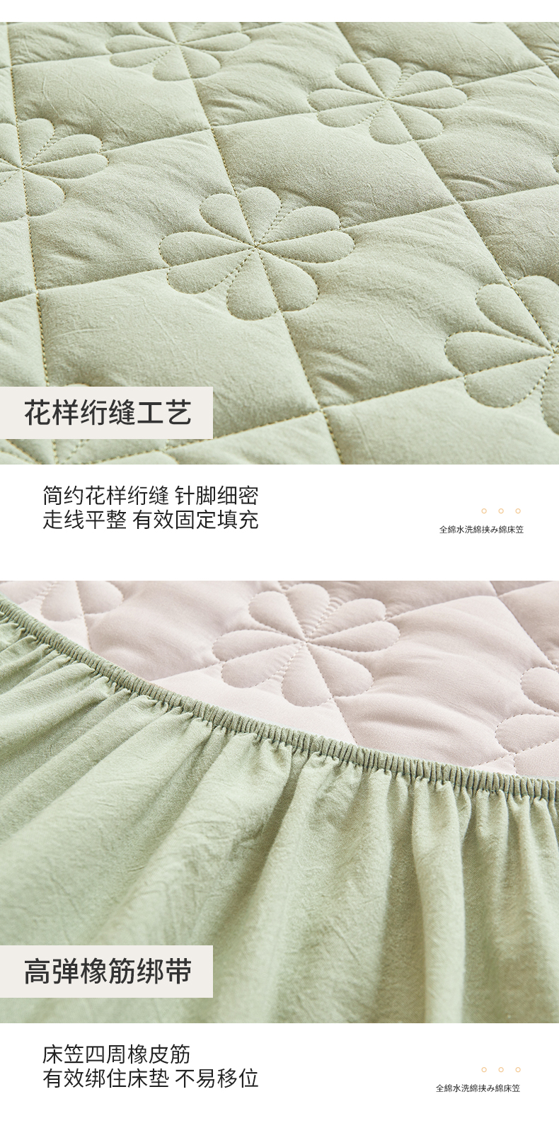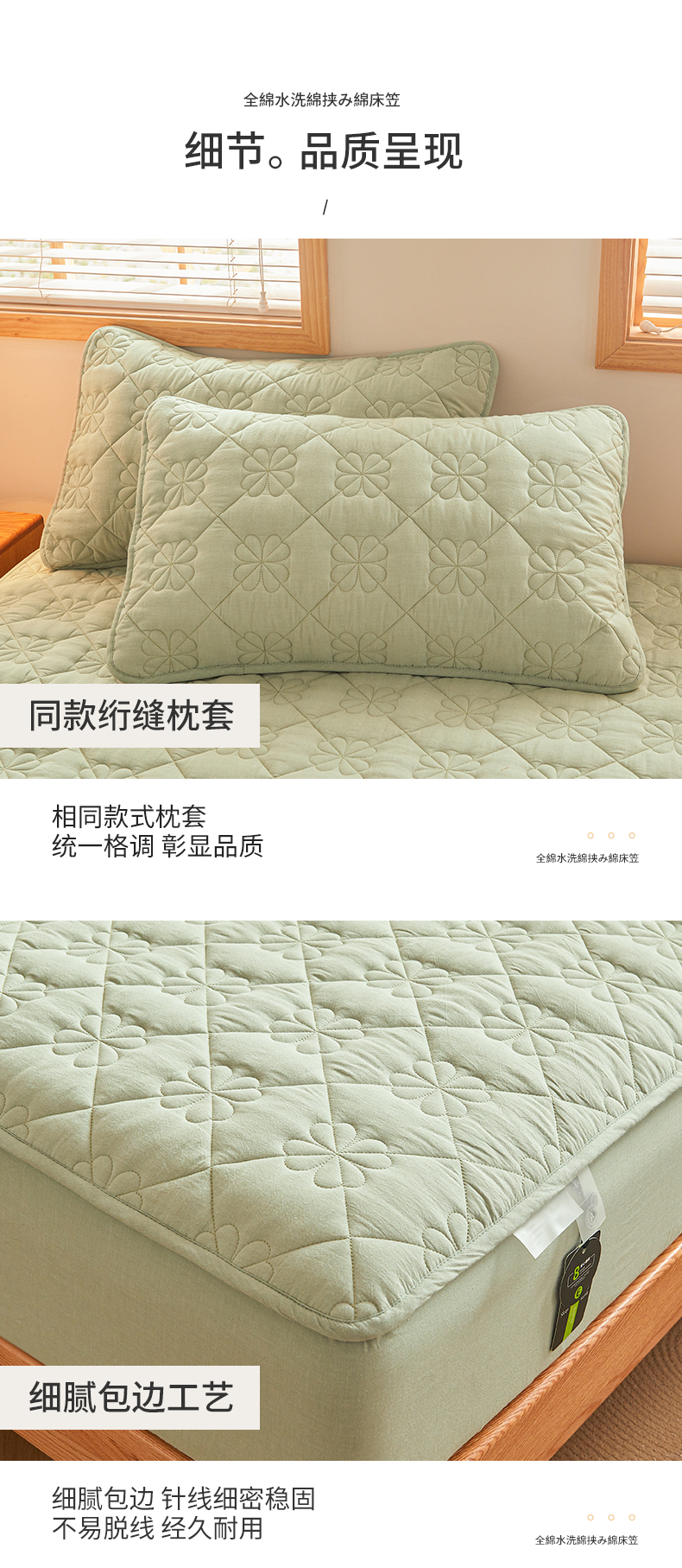 商品名称:3C 2024新款全棉水洗棉夹棉床笠-浅语系列 浅语-青果绿