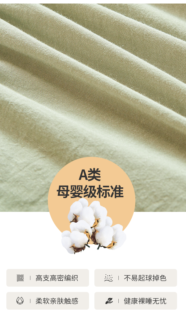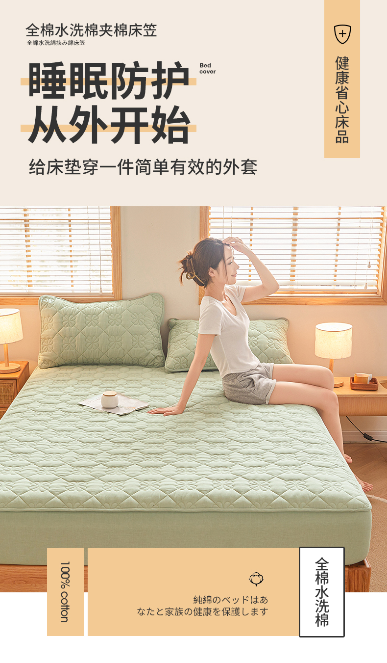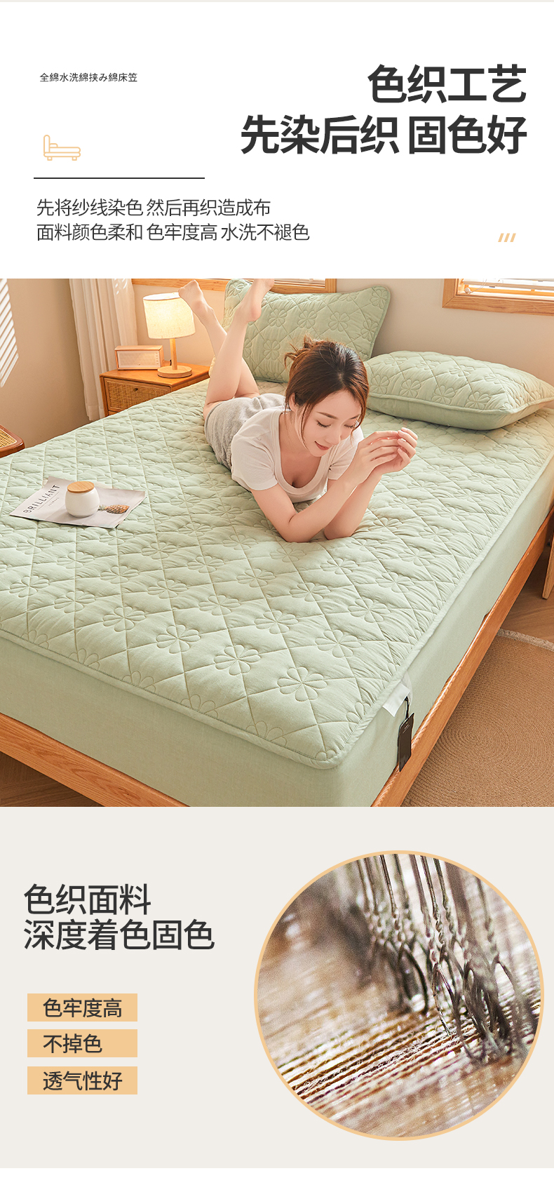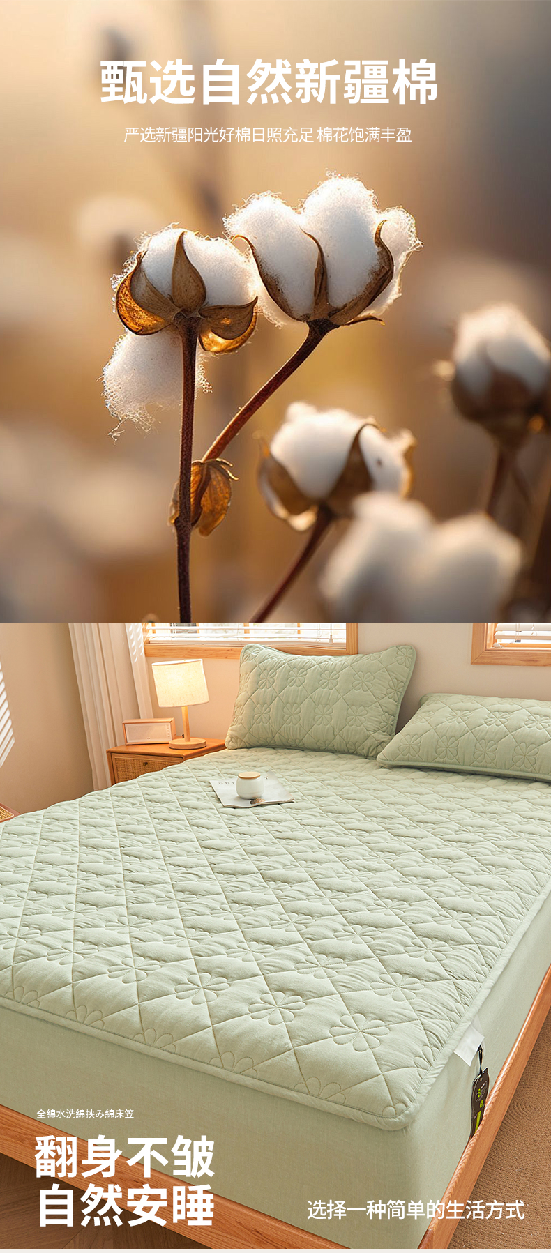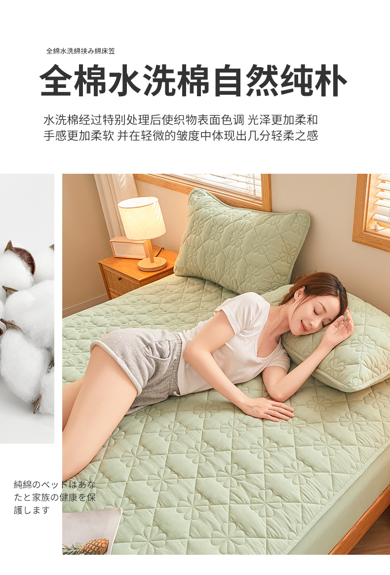 商品名称:3C 2024新款全棉水洗棉夹棉床笠-浅语系列 浅语-青果绿