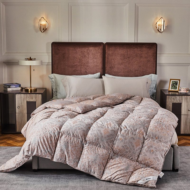 (总)数码印花自充绒鹅绒被套加厚糯棉磨毛防钻绒羽绒被半成品被壳批发,锦上花浅橘红,绒羽蓝棕,西雅图灰