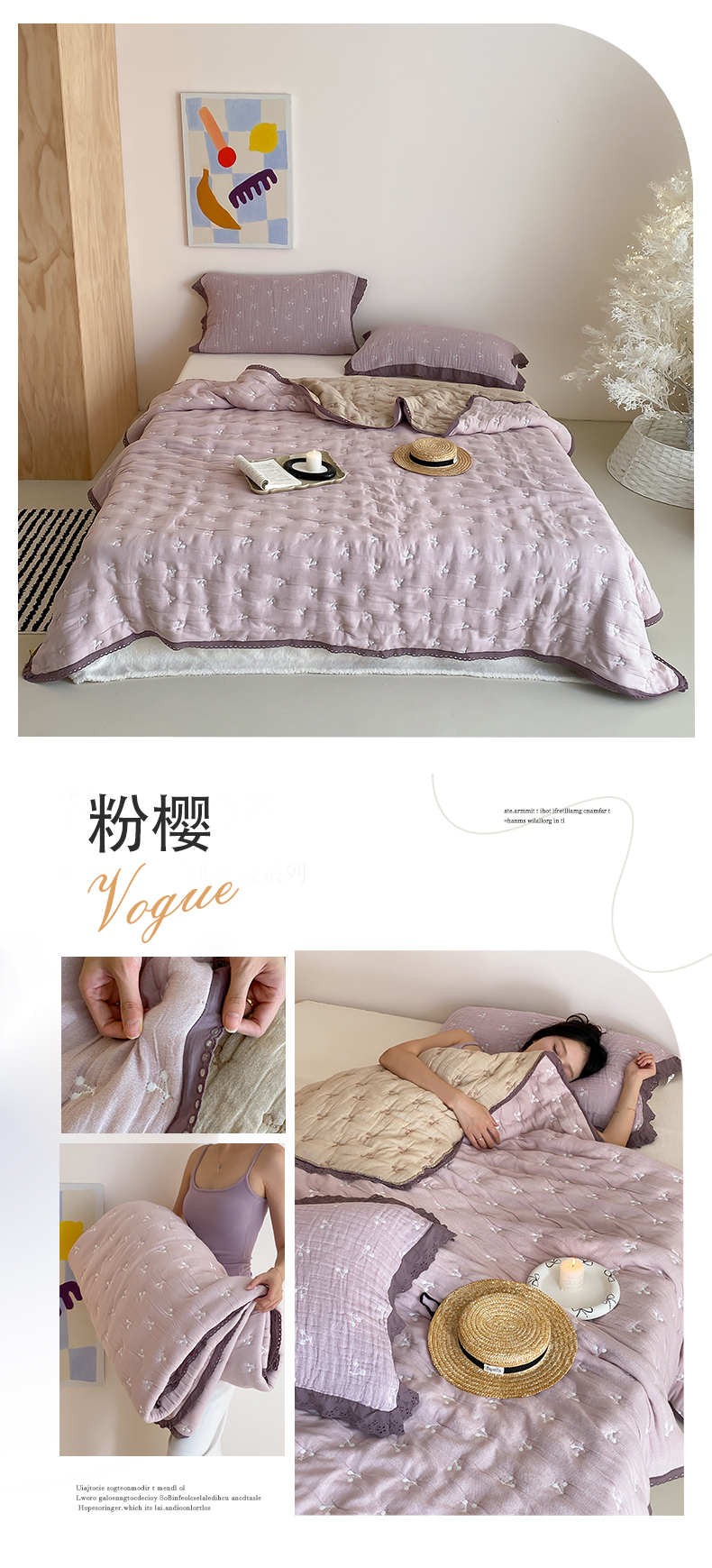 商品名称:麻依 2024新款十层纱布泡芙被纱布被子秋冬被 粉樱