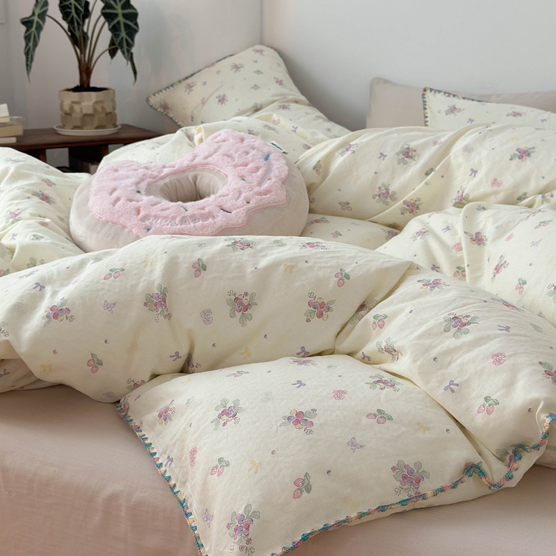 (总)洋铭区(原狠狠爱) 2026新款全棉纯棉双层纱刺绣蕾丝花边件套,蓓蕾兰花,草莓味,蝴蝶粉兔,花语香香,浪漫玫瑰,素雅情花,甜甜小花,小兰雏菊,紫花蔓蔓
