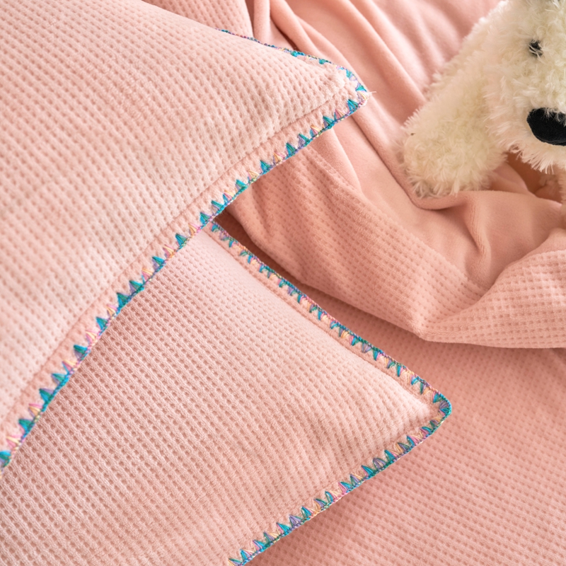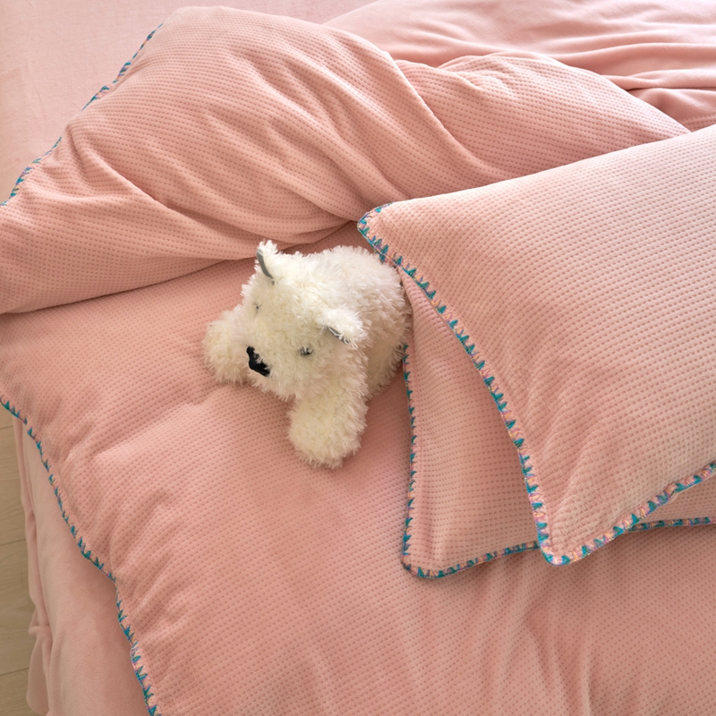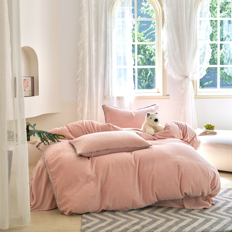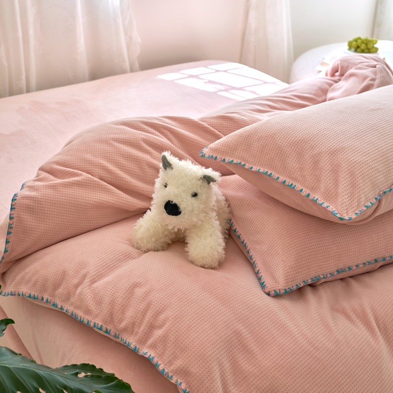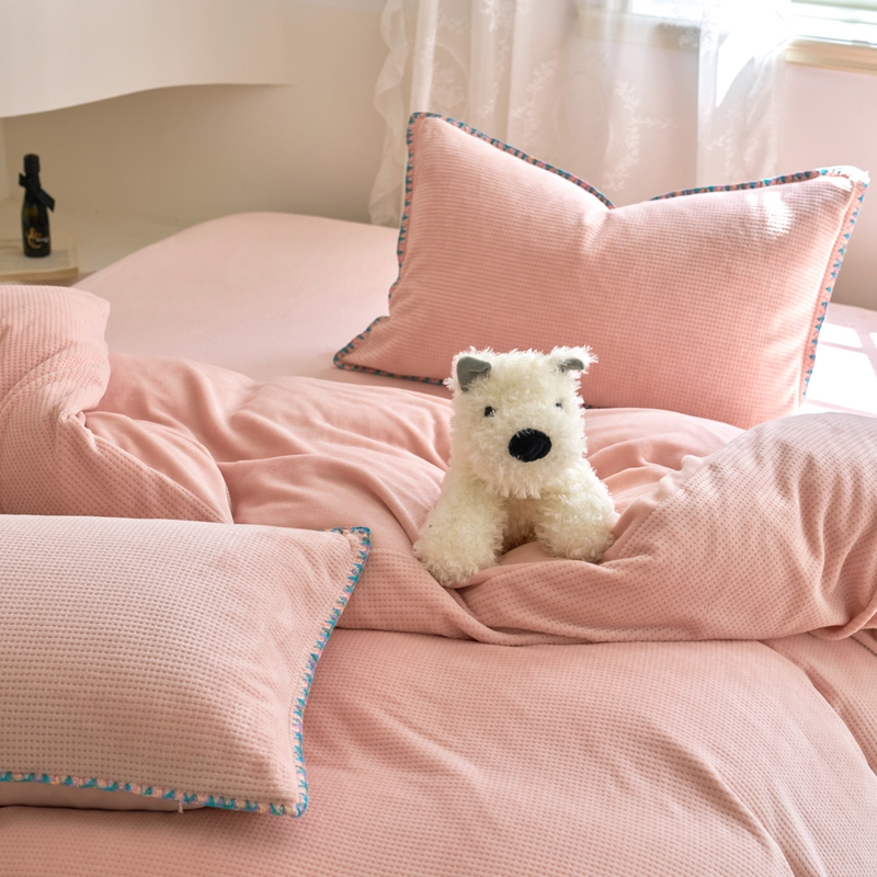 洋铭区(原狠狠爱) 2024新款华夫格 绒(彩边)四件套 藕荷粉