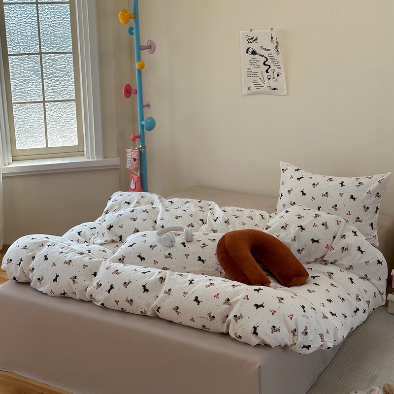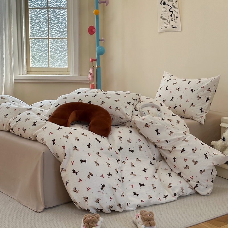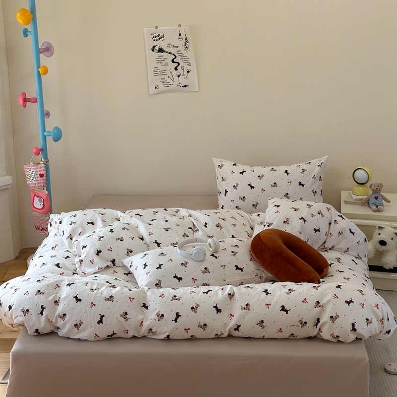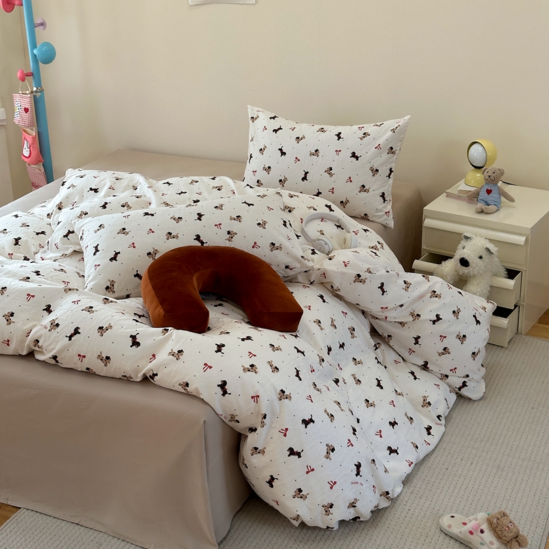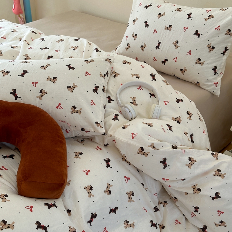 洋铭区(原狠狠爱) 2024新款无边全棉双层纱四件套 蝴蝶小咖狗
