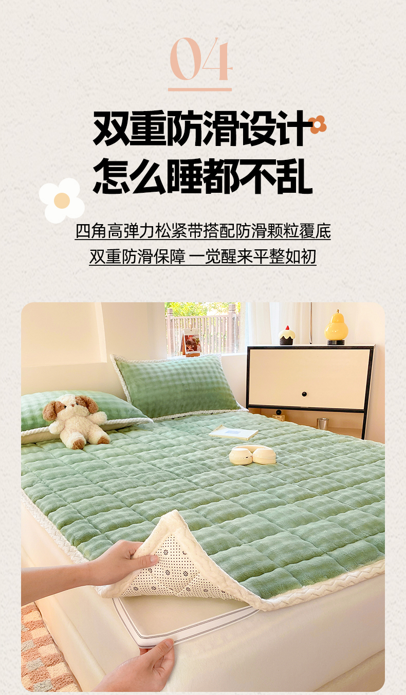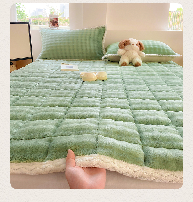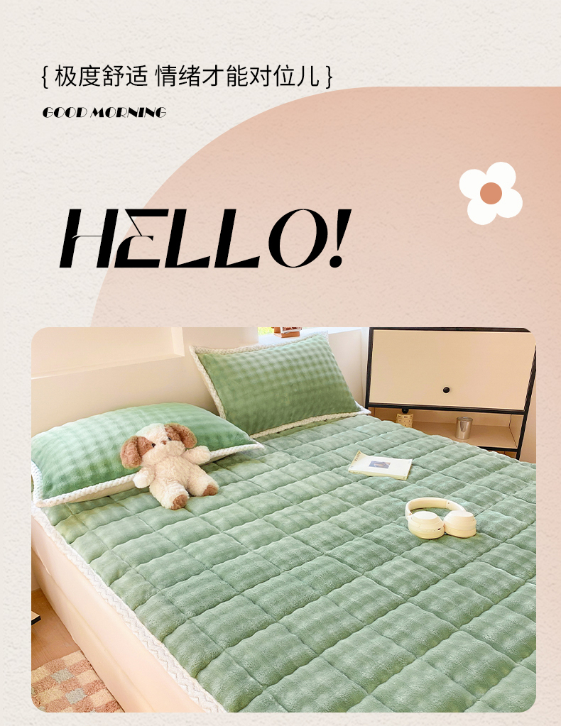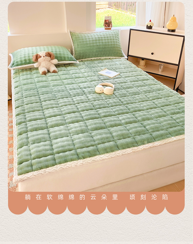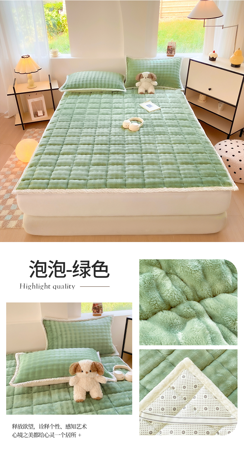 • 91家纺网 家纺一手货源 找家纺 东宇床垫 2024新款A类牛奶绒-泡泡绒夹棉床褥 泡泡-绿色