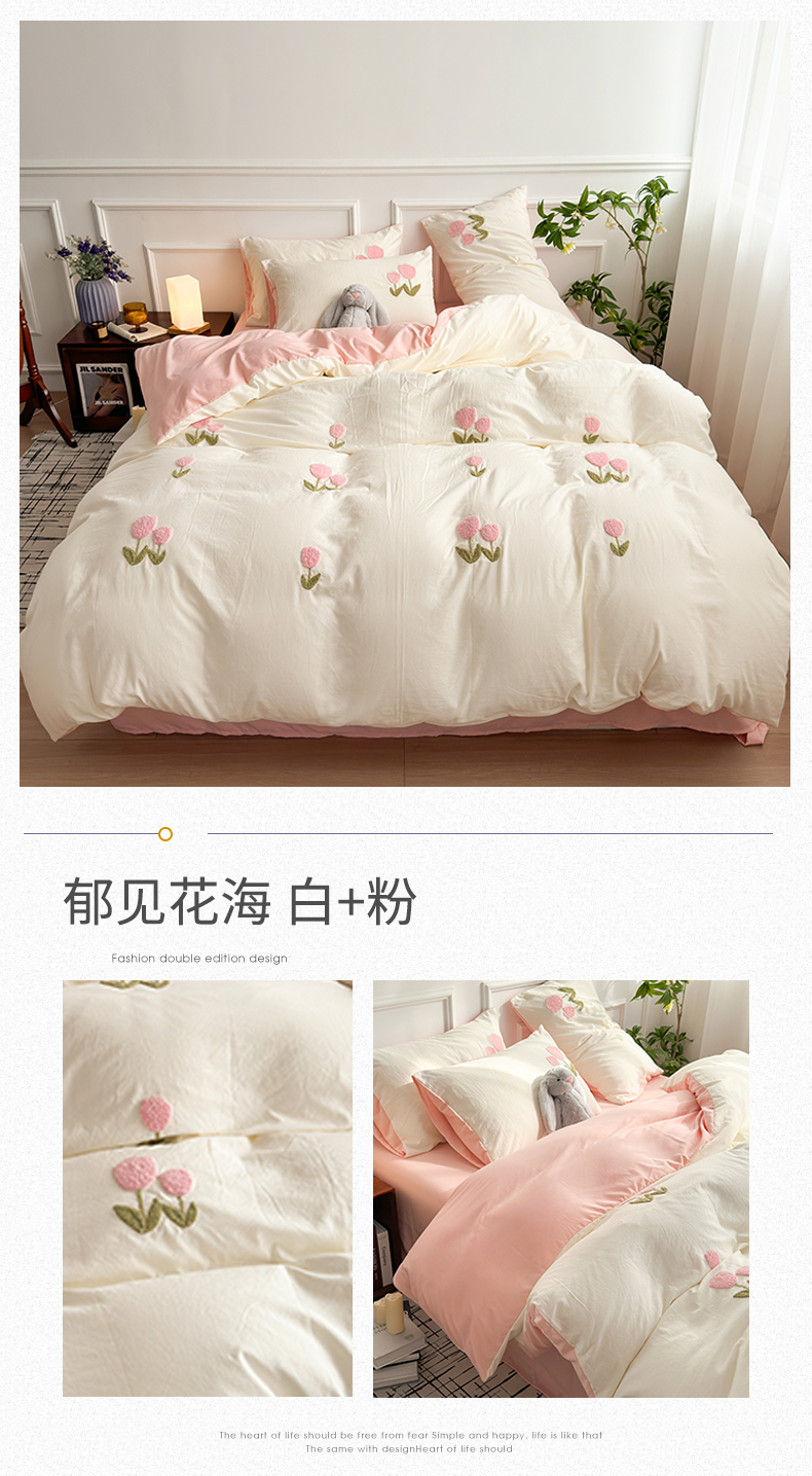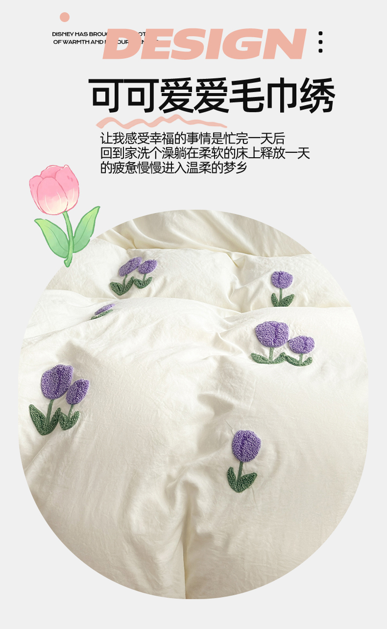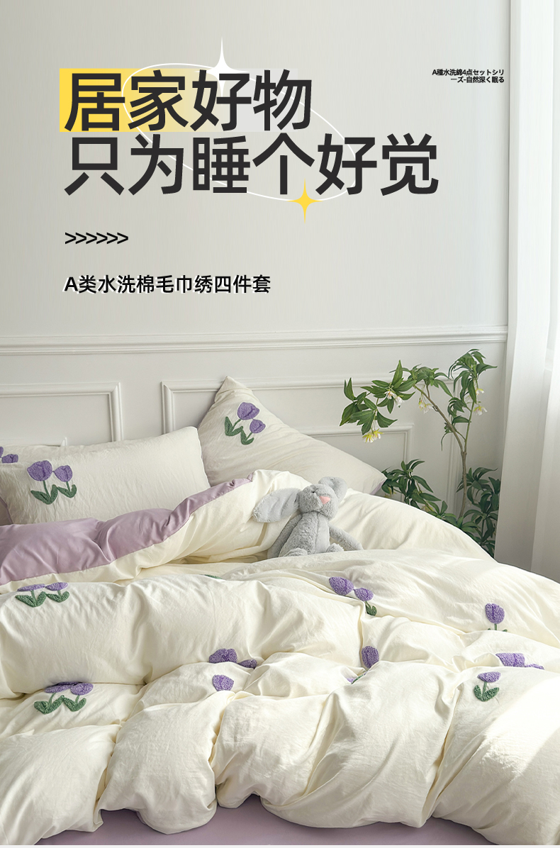 商品名称:(总)多品家纺 2024新款水洗棉毛巾绣【四件套】郁见花海