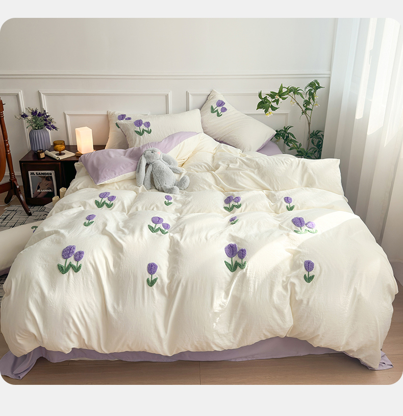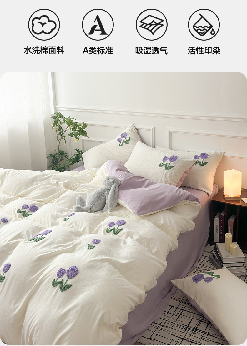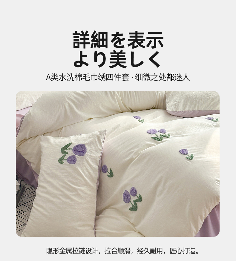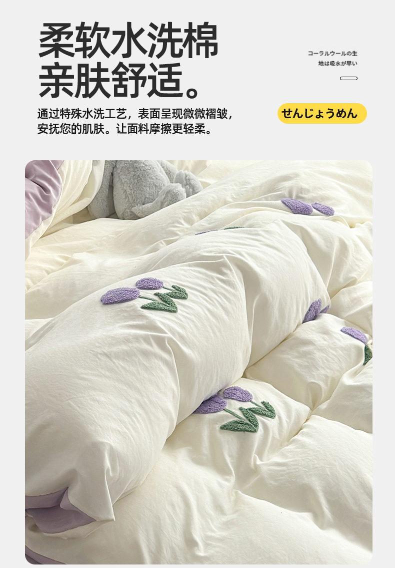 商品名称:(总)多品家纺 2024新款水洗棉毛巾绣【四件套】郁见花海