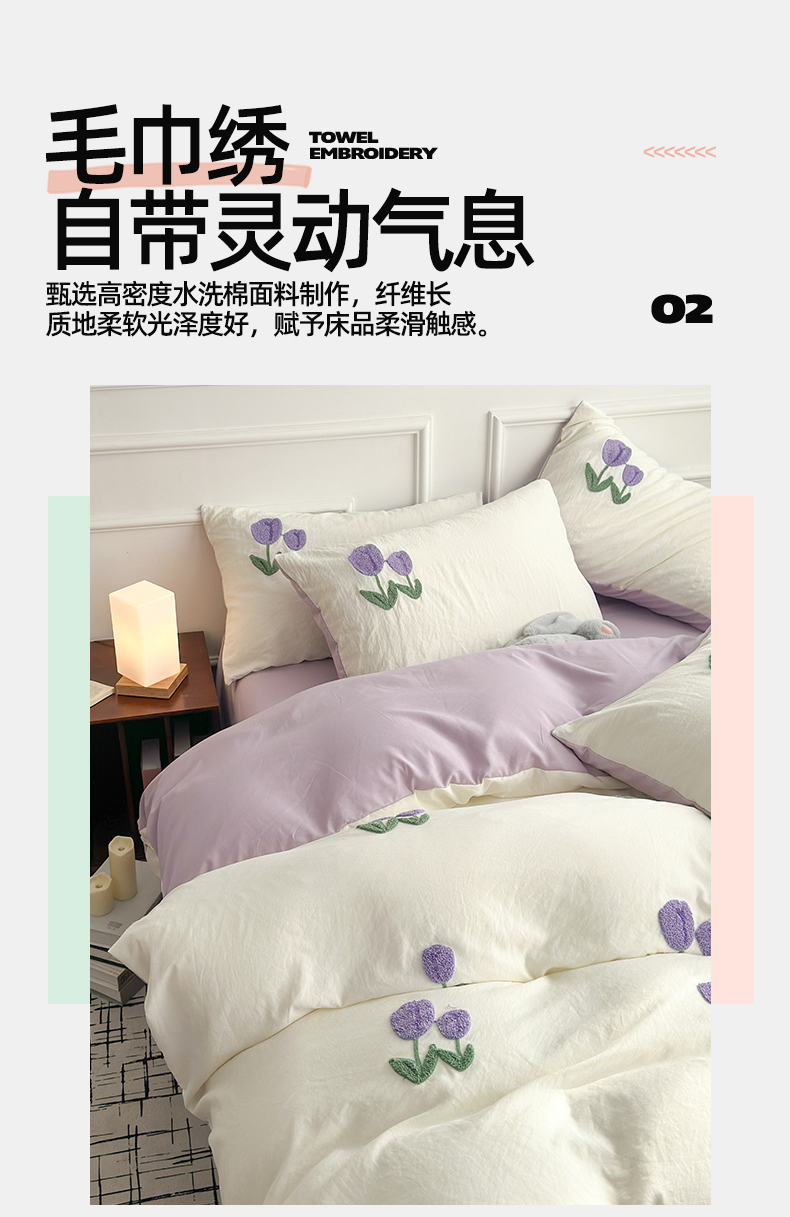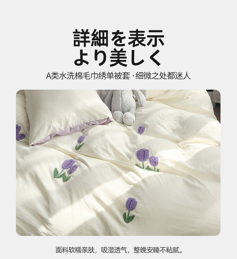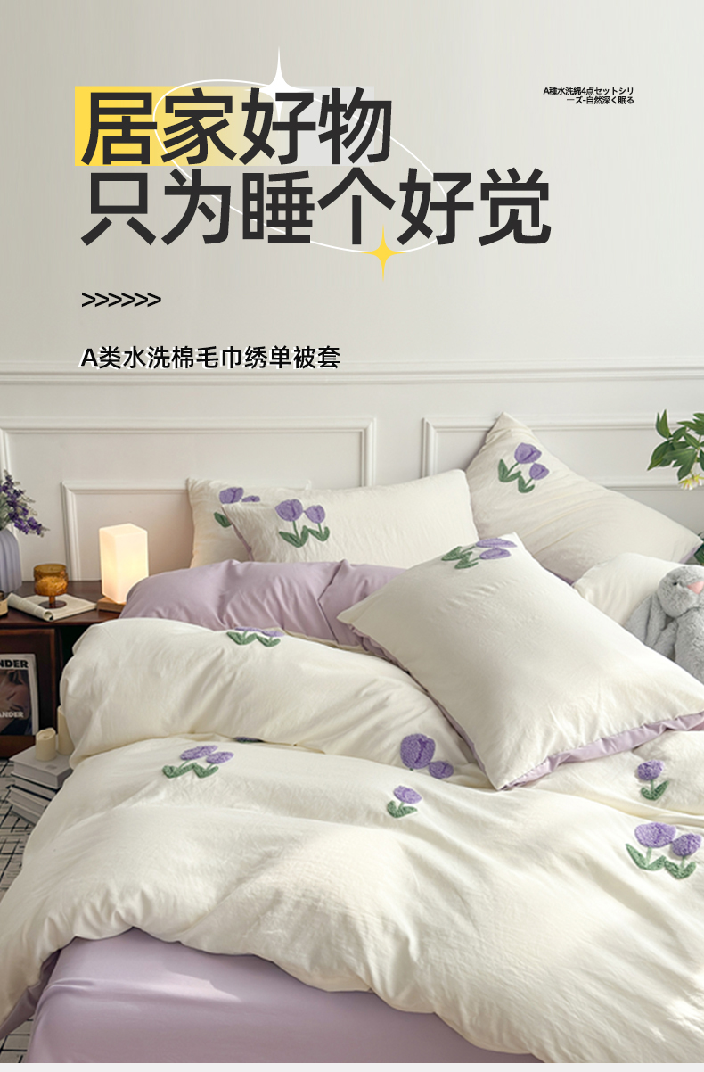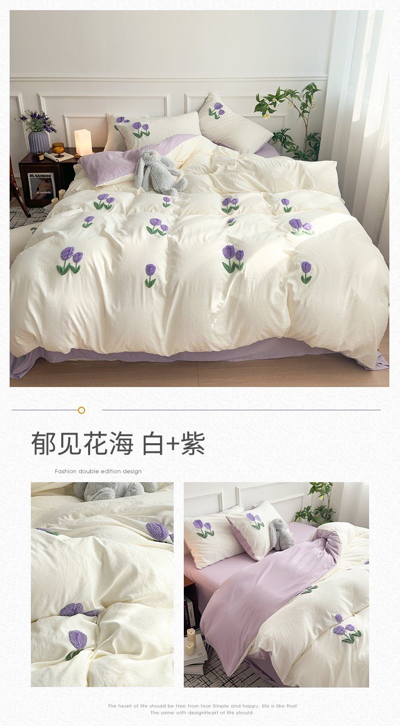 商品名称:多品家纺 2024新款水洗棉毛巾绣【单被套】郁见花海 郁见花海白+紫