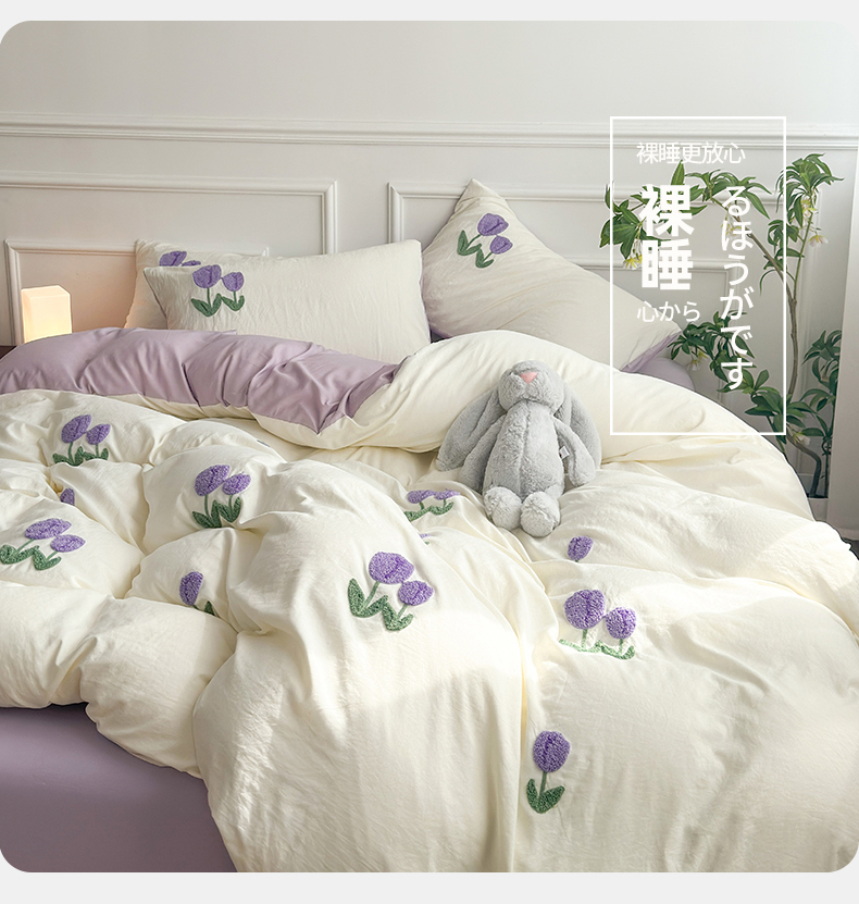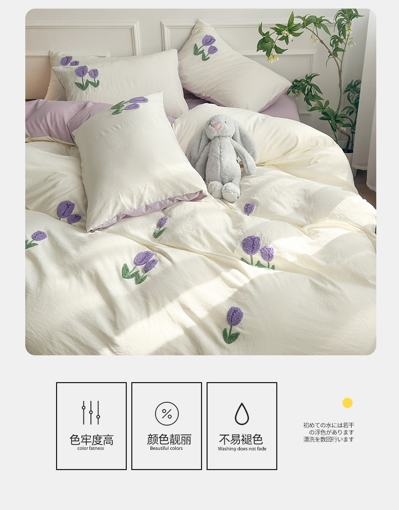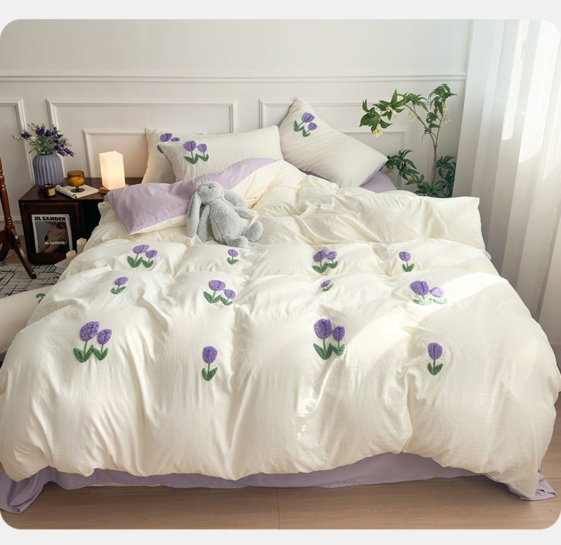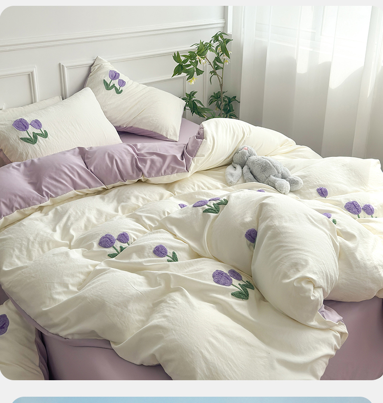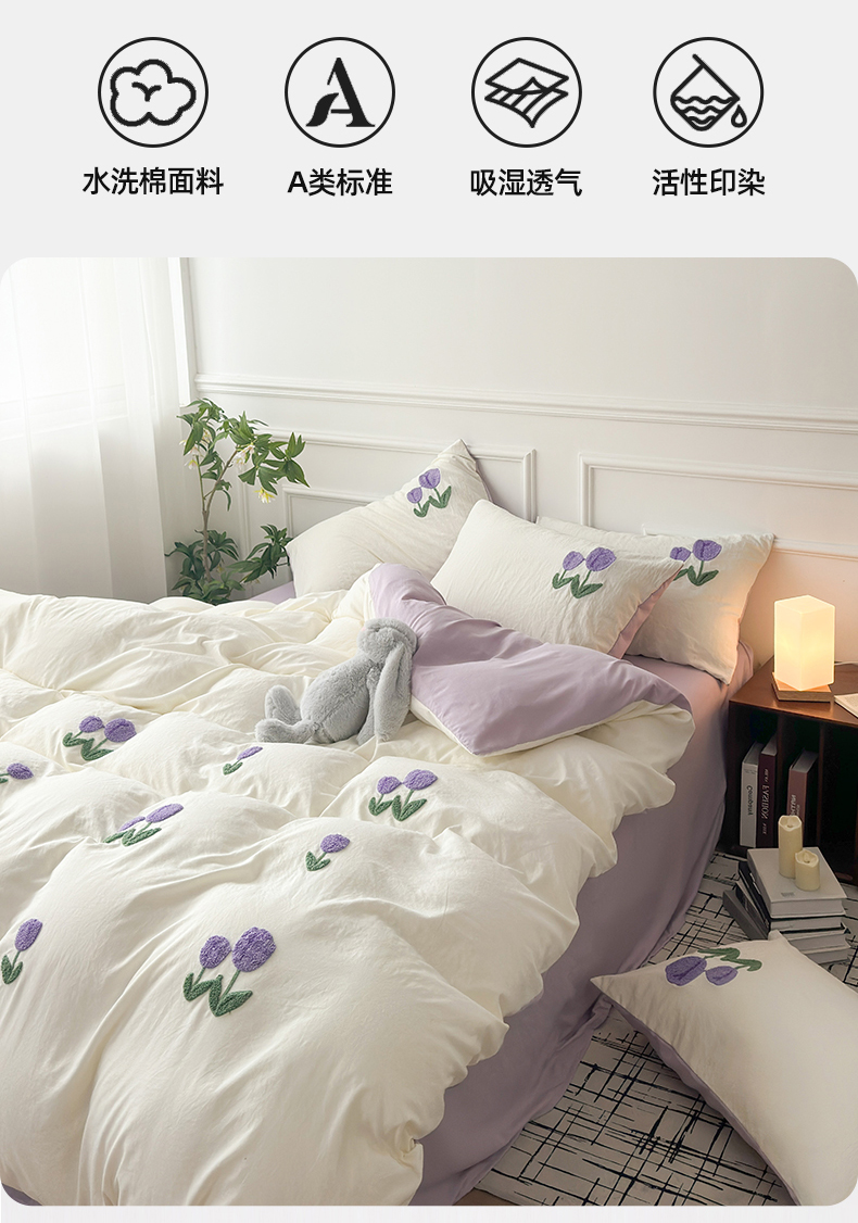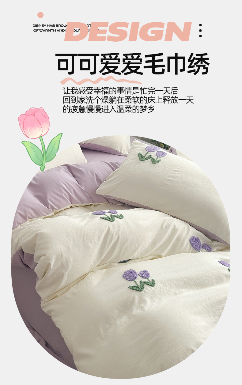 商品名称:多品家纺 2024新款水洗棉毛巾绣【单被套】郁见花海 郁见花海白+紫