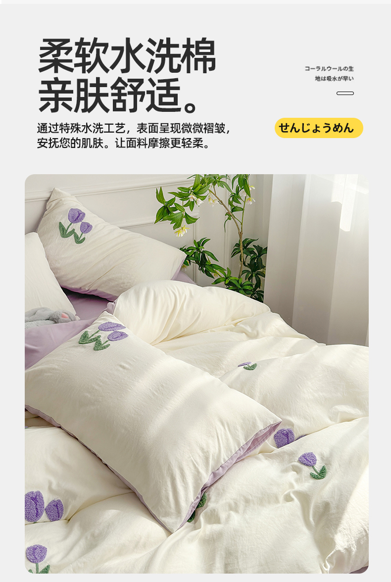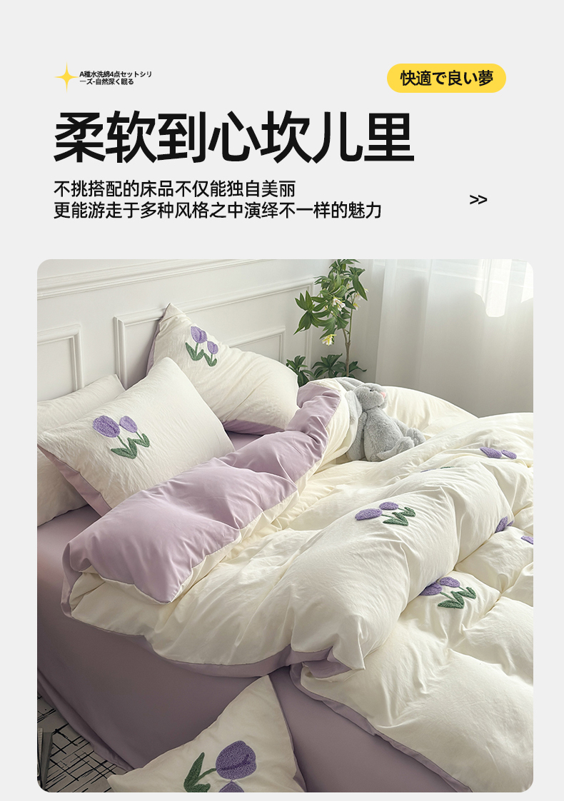 (总)多品家纺 2025新款ins奶油风刺绣枕套毛球款水洗棉四件套,洛熙,梦幻甜心,卿本佳人,月光恋语