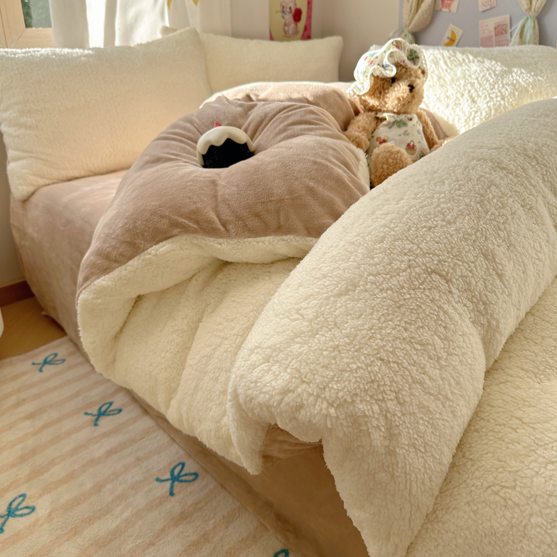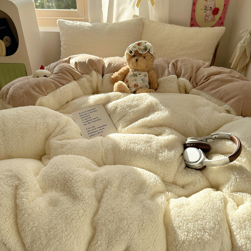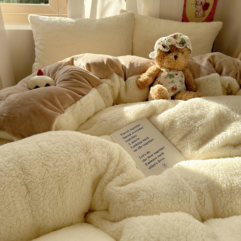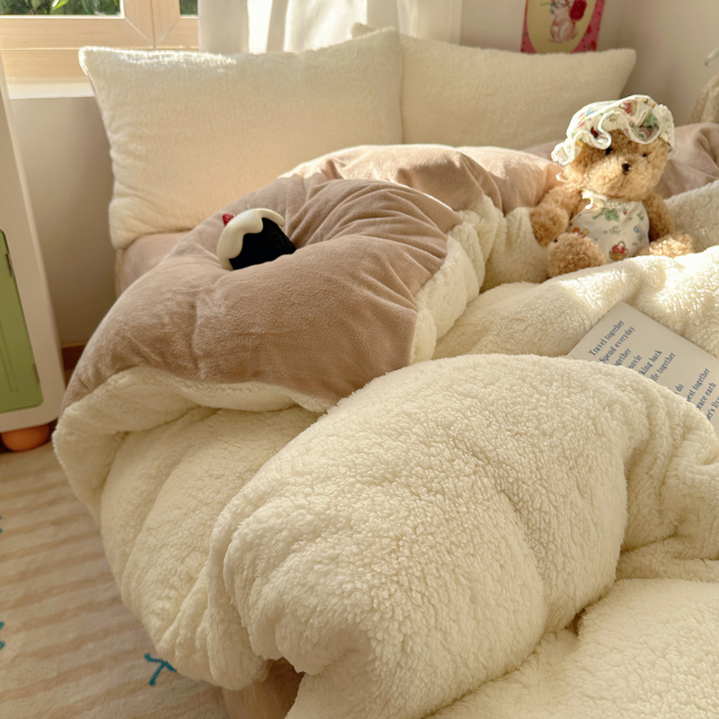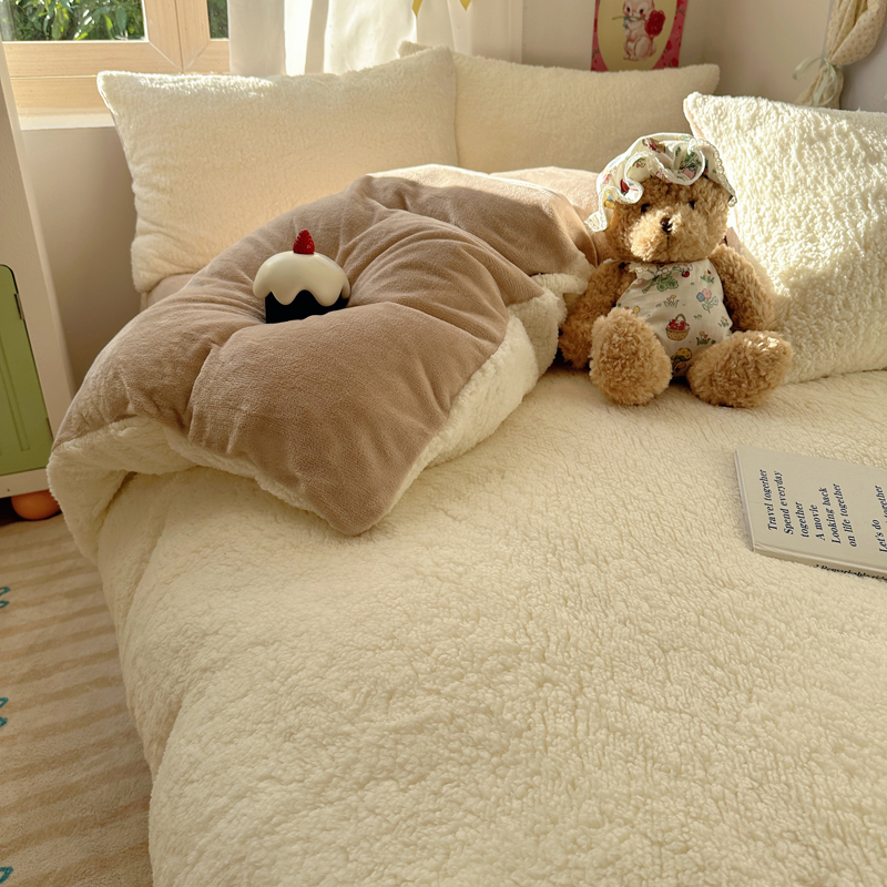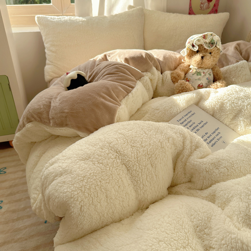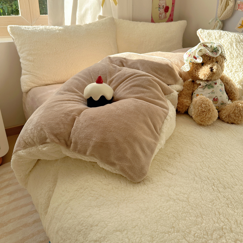 顾里家纺 2024新款ins韩系牛奶羊羔绒套件 羊羔咖