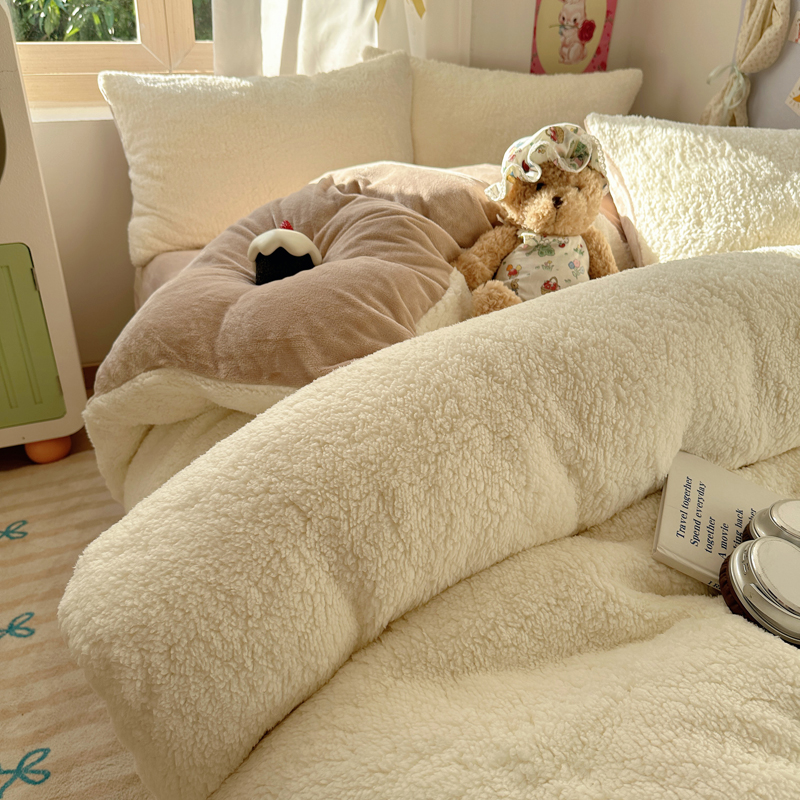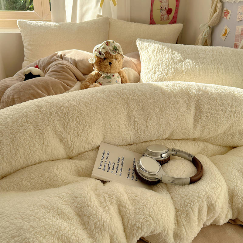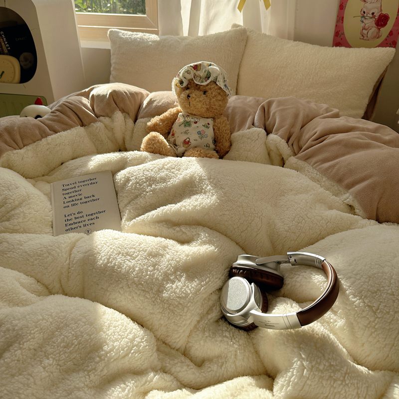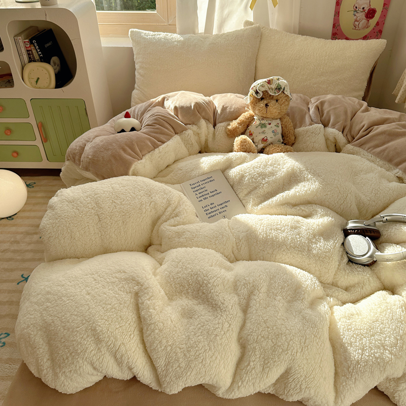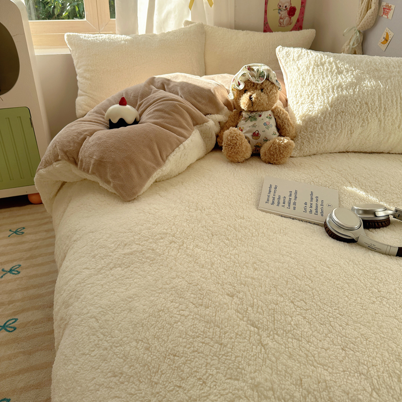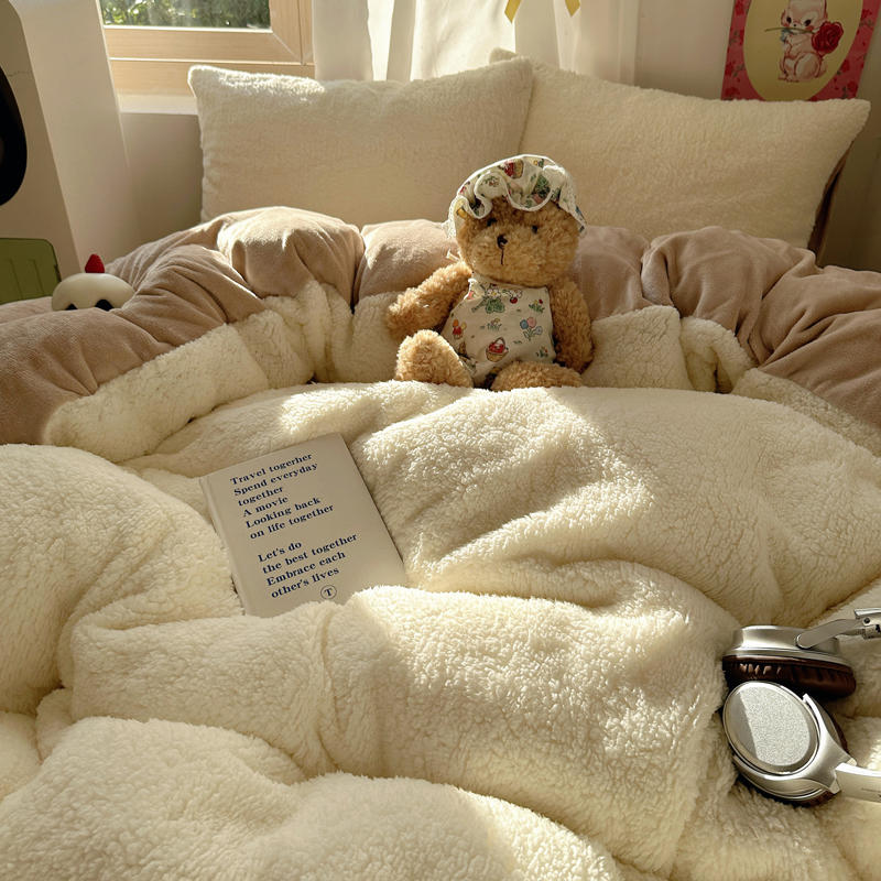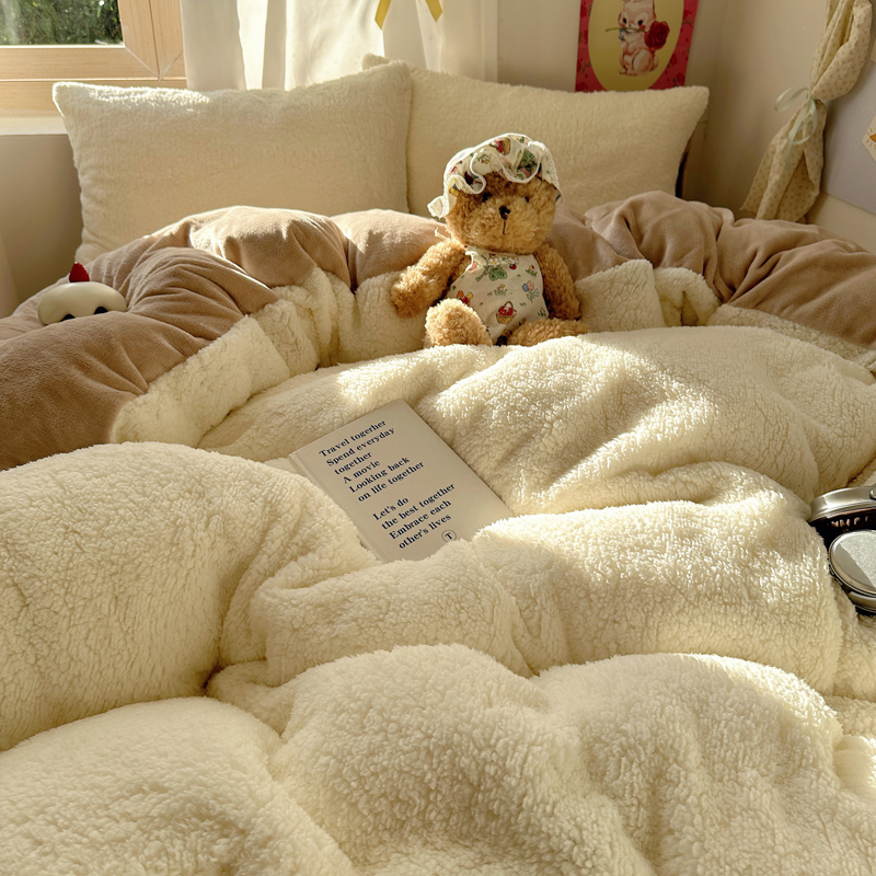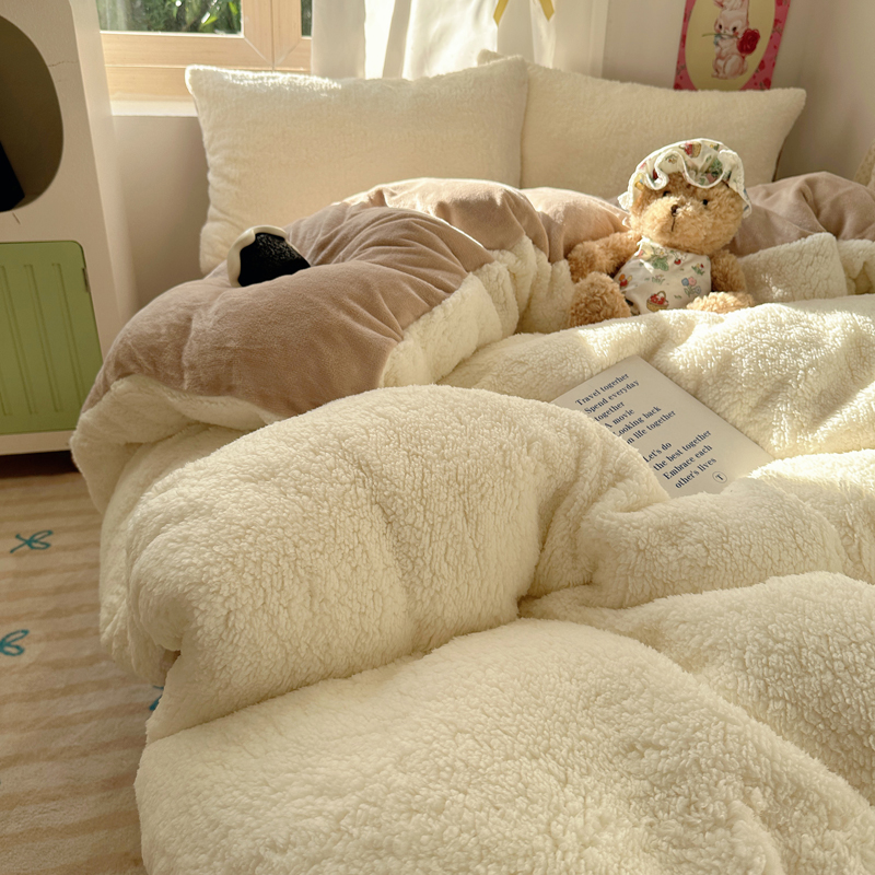 顾里家纺 2024新款ins韩系牛奶羊羔绒套件 羊羔咖