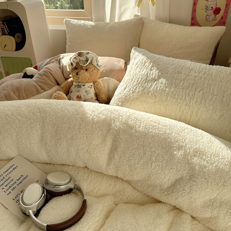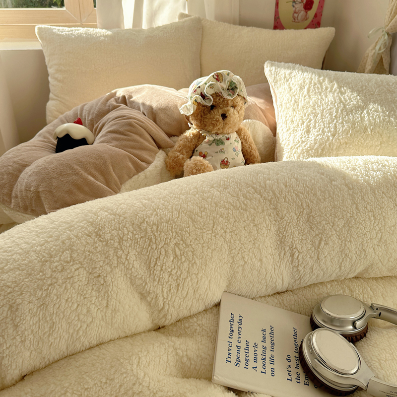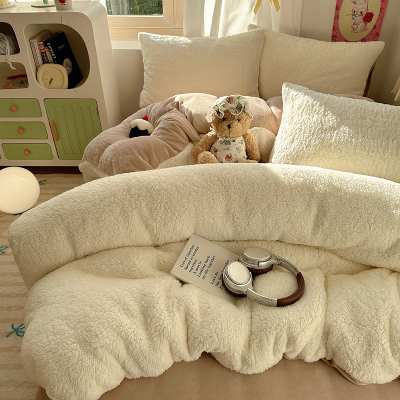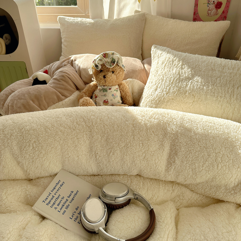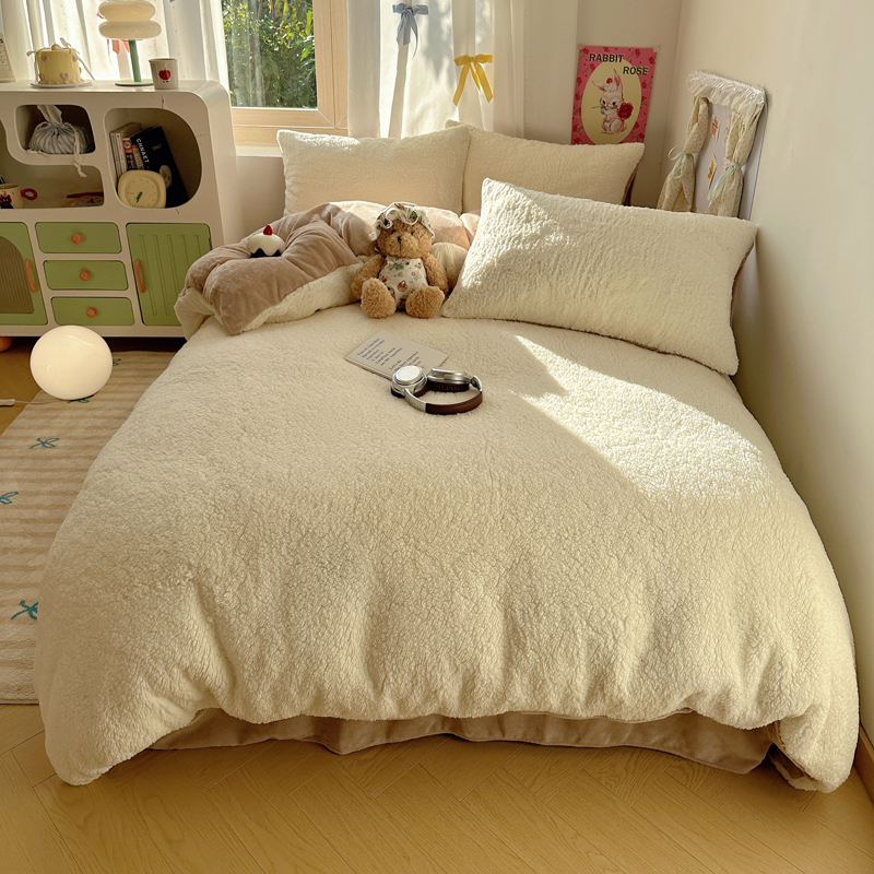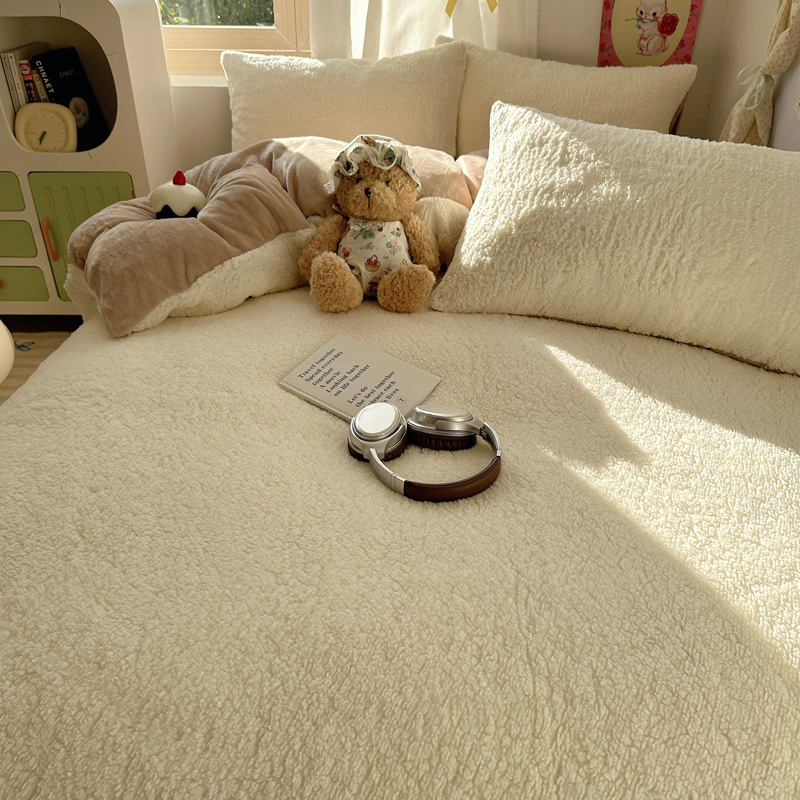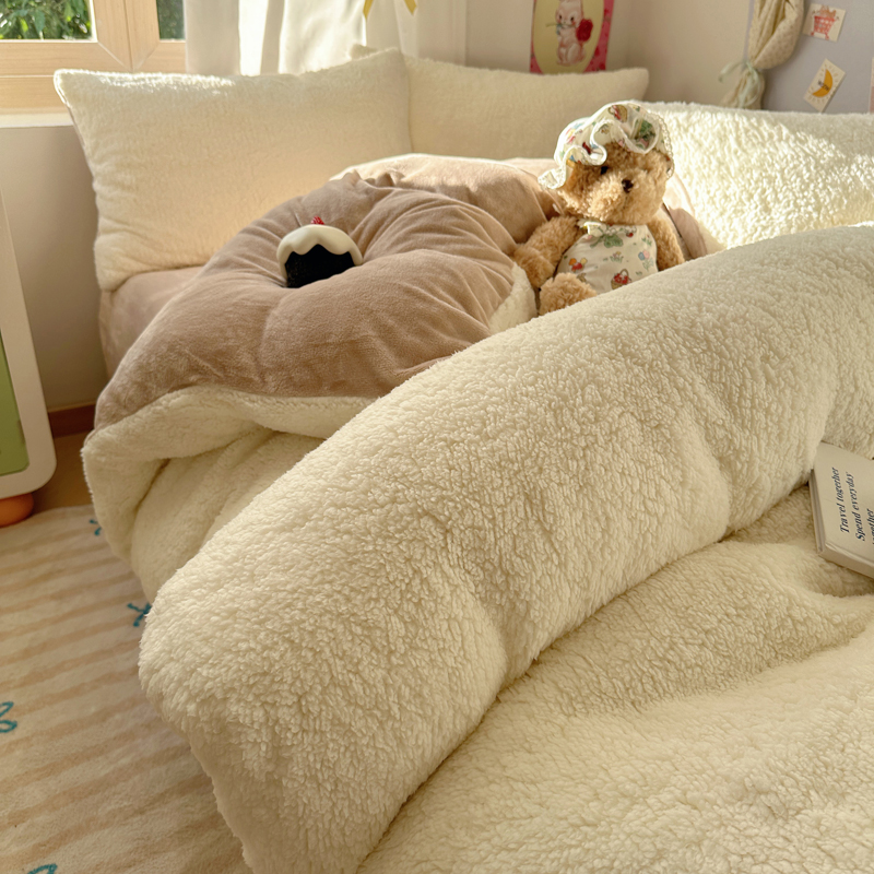 顾里家纺 2024新款ins韩系牛奶羊羔绒套件 羊羔咖
