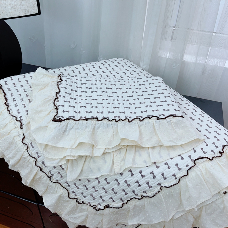 暖居 2024新款韩系高温砂洗棉花泡泡花边款床盖三件套绗缝加棉防滑床单 泡泡蝴蝶结