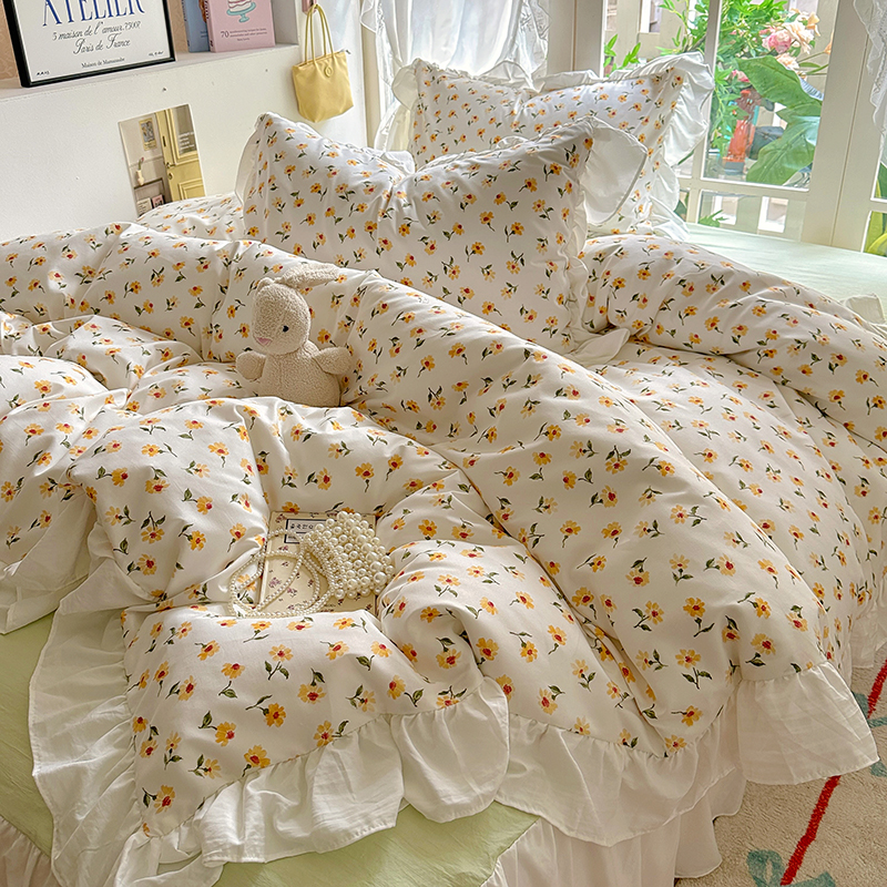 当前位置: 91家纺网 > 商品网购 > 床品套件 > 四件套 > 水洗棉四件套 > 家贝爱 2024新款南法风花边水洗棉四件套 南法风-恋人黄