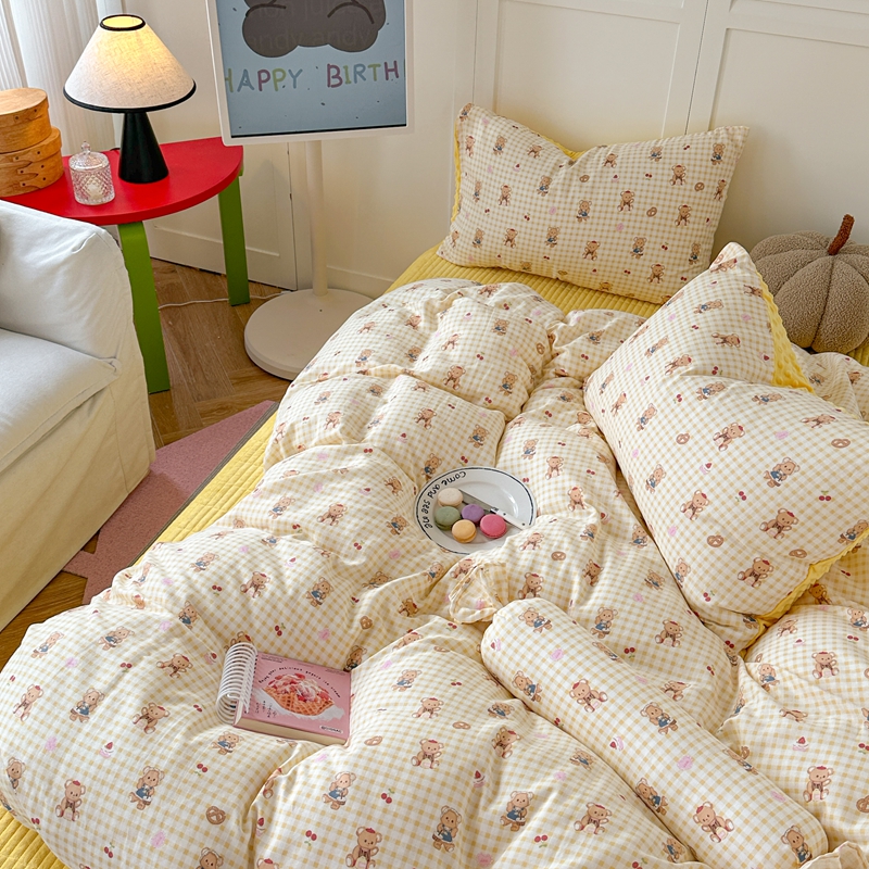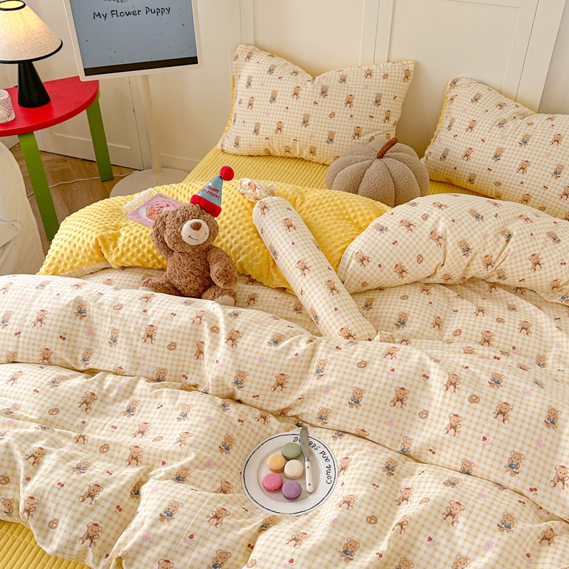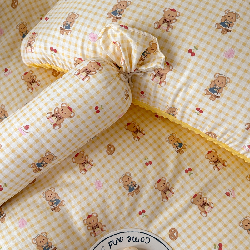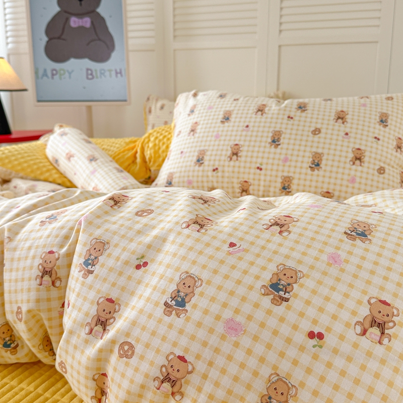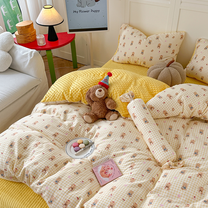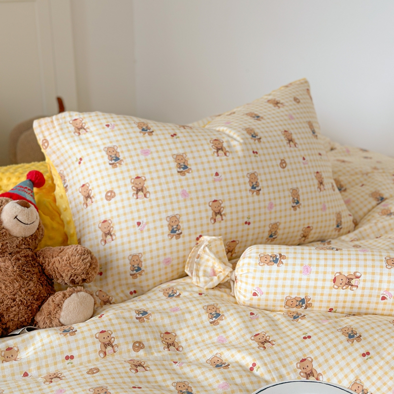 商品名称:柚子YOUTH 2024新款全棉双层纱豆豆婴儿绒床盖四件套 黄格小熊