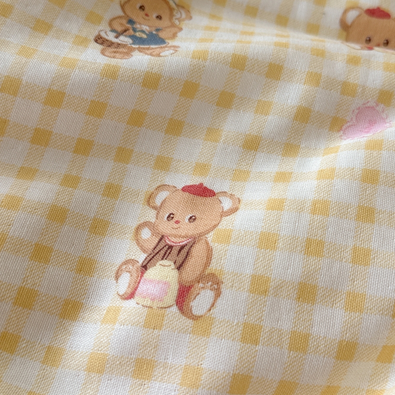 柚子YOUTH 2024新款全棉双层纱豆豆婴儿绒床盖四件套 黄格小熊