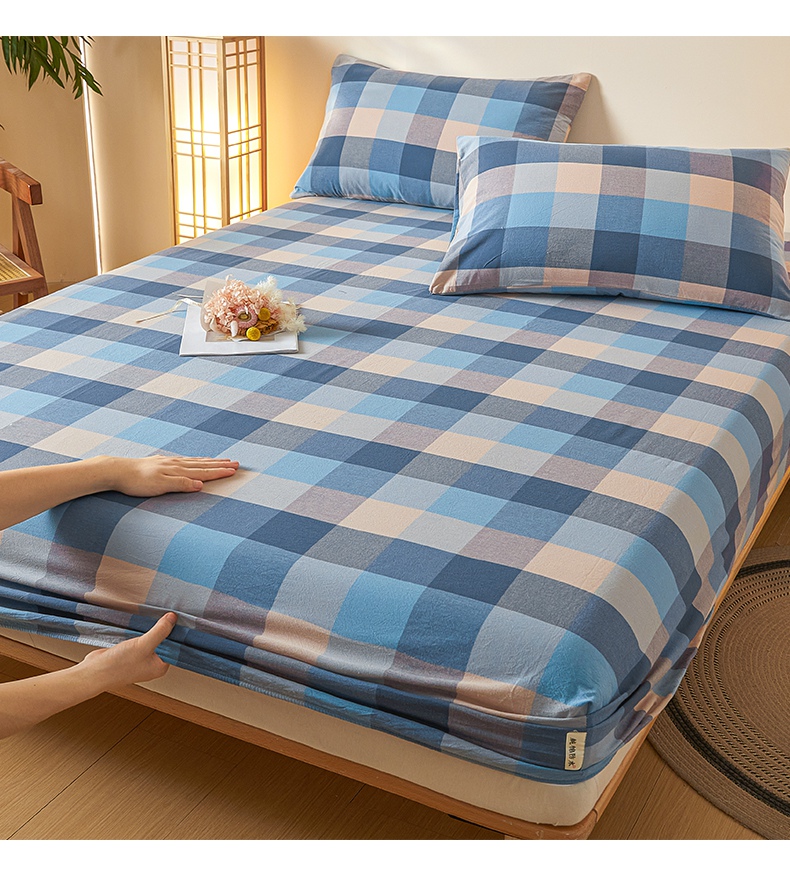芬晴家纺 2024新款全棉色织防水床笠大床款 防水-英伦格